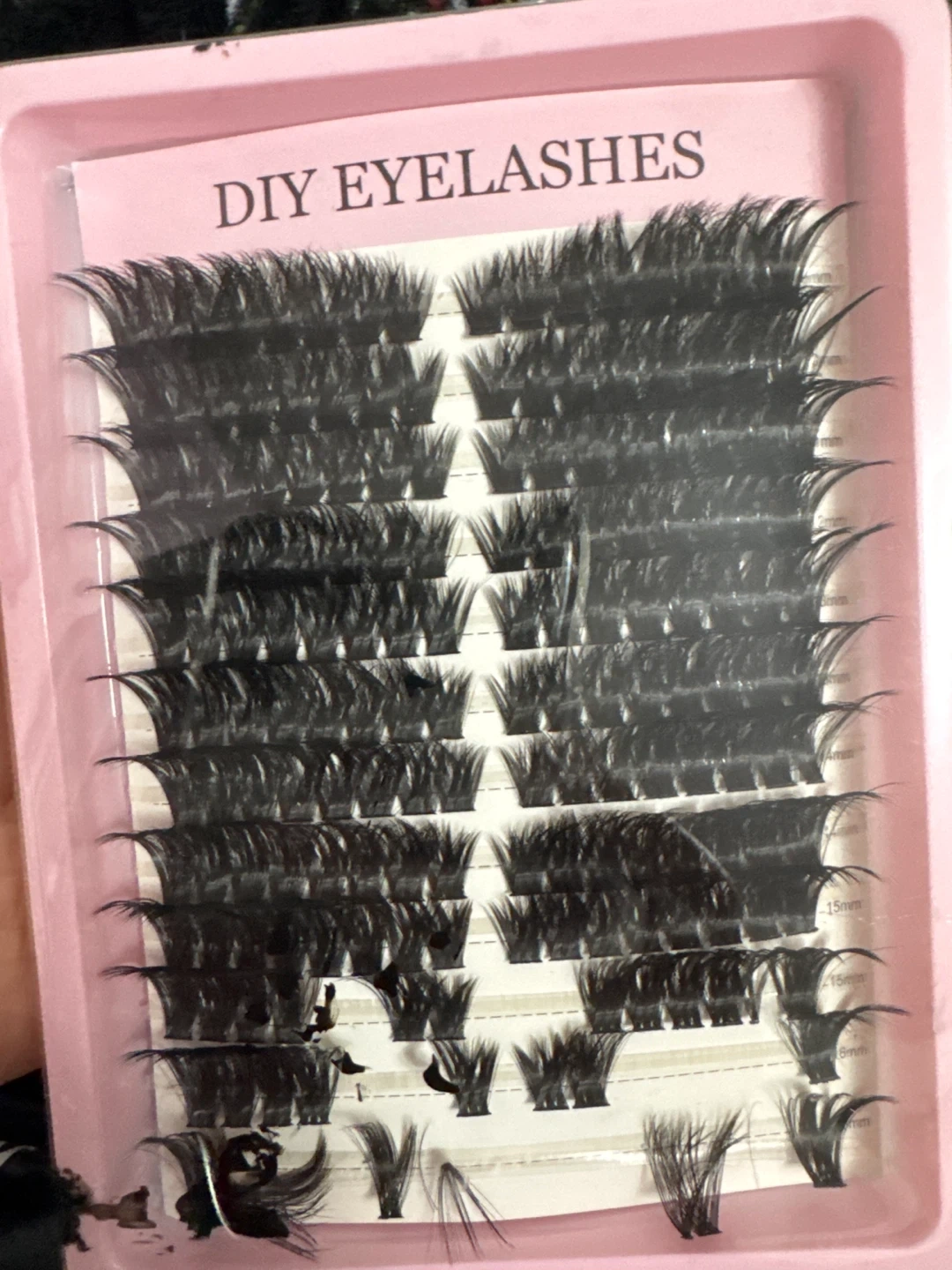 These are DIY cluster eyelashes for a natural look. Available in various lengths like 8mm, 15mm, and others. They come in a convenient tray for easy application.