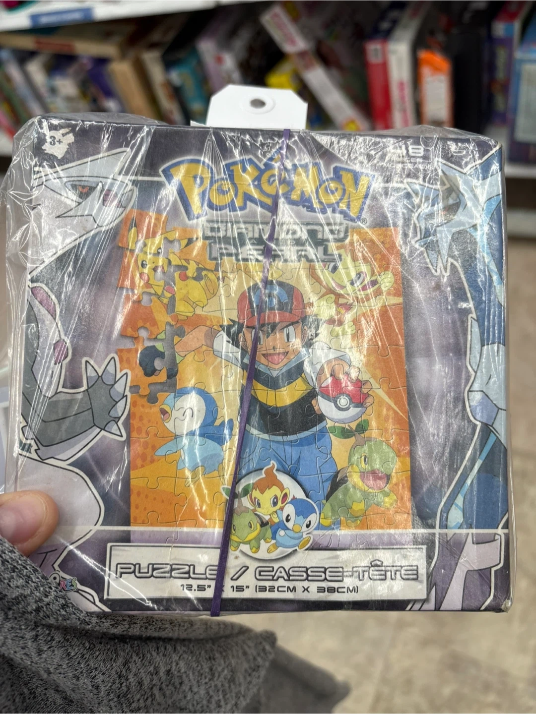 One Pokemon MB puzzle, 60 pieces, for ages 4-8. Also includes three Pokemon trading cards: Rotom, Yanmega, and Mega Emboar EX. Great for fans of Pokemon!
