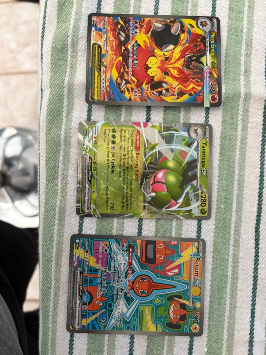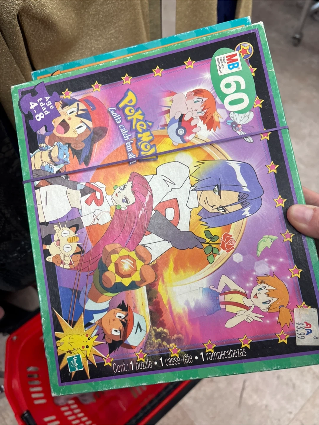 One Pokemon MB puzzle, 60 pieces, for ages 4-8. Also includes three Pokemon trading cards: Rotom, Yanmega, and Mega Emboar EX. Great for fans of Pokemon!