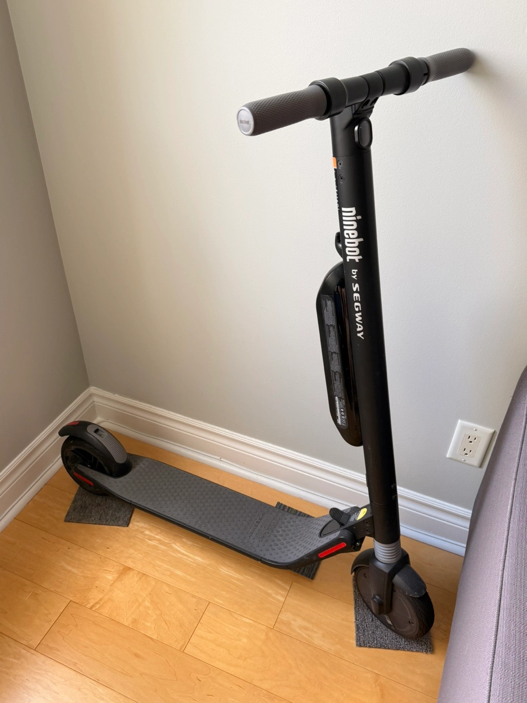 Solid condition foldable electric scooter with 2 batteries (for a range of up to 45 km). Weighs 31 lbs. Digital display shows speed and can connect via Bluetooth to your phone. Can toggle between Low, Standard and Sport speed modes. Comes with charging cable and a bell on the handlebar. Front LED light can be set on or off. Selling because I switched to a bike recently.