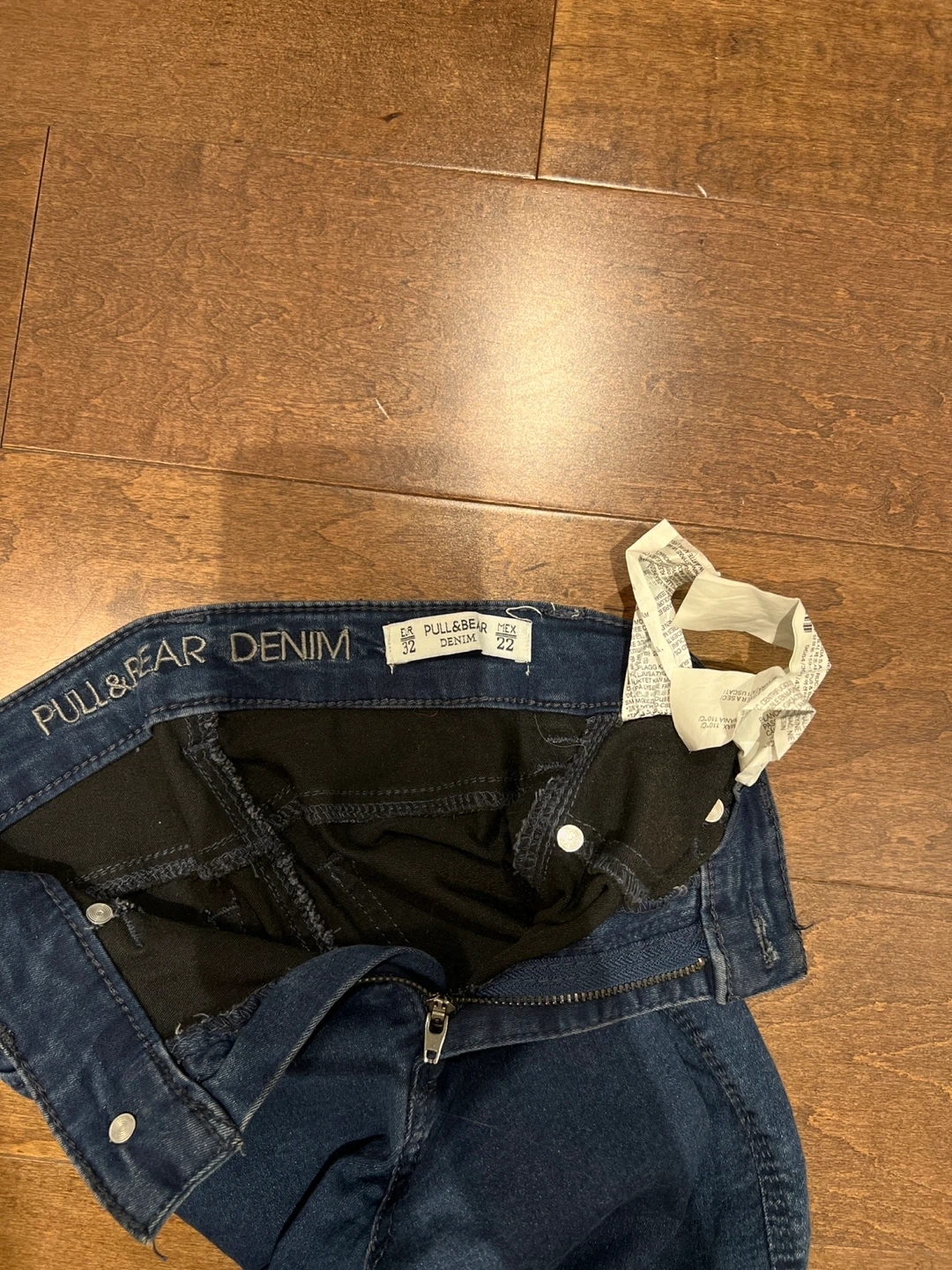 Dark wash skinny jeans from PULL&BEAR Denim. It's a size 32. They're made of a comfortable stretch denim. These are a versatile staple for any wardrobe! XS