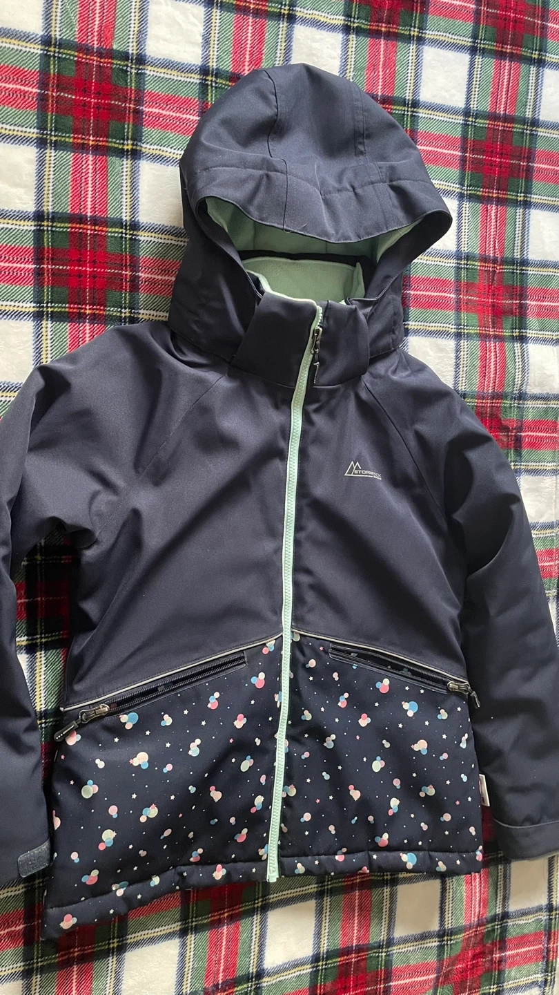 This Stormtech ski jacket and bib pants set is designed for cold weather. It features 3M Thinsulate insulation for warmth and is made from durable, water-resistant materials. The bib pants have adjustable suspenders for a comfortable fit. This set is perfect for keeping kids warm and dry during winter activities! Size 12