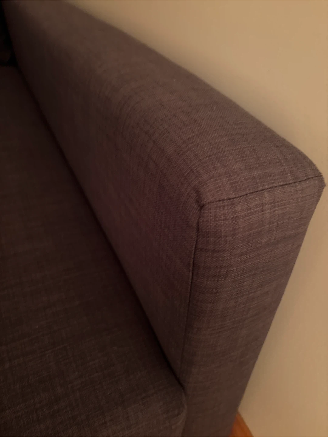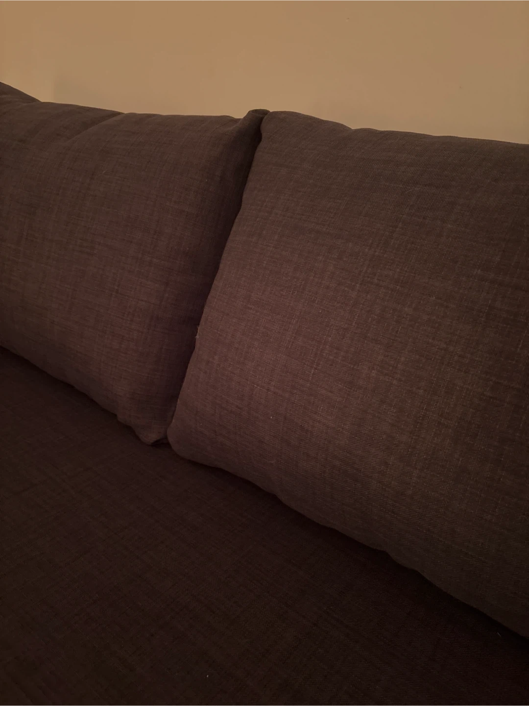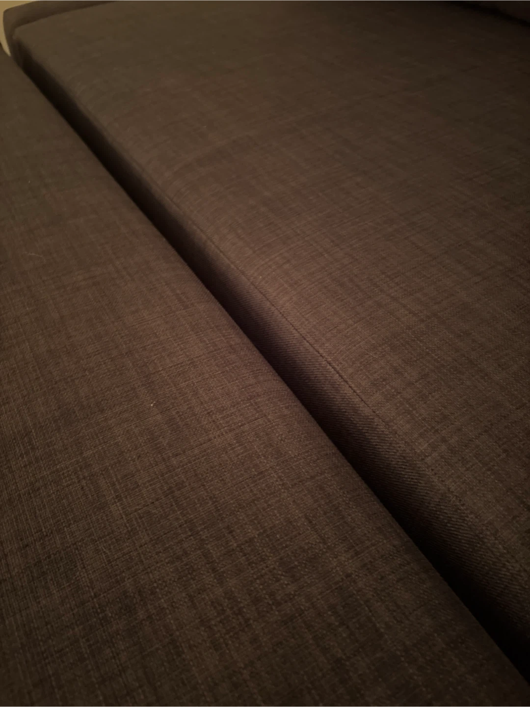 A dark brown sectional sofa that's comfy and functional. It easily converts into a pull-out bed, perfect for guests. The fabric seems durable and the colour is neutral. It's a great option for maximizing space in your living area!