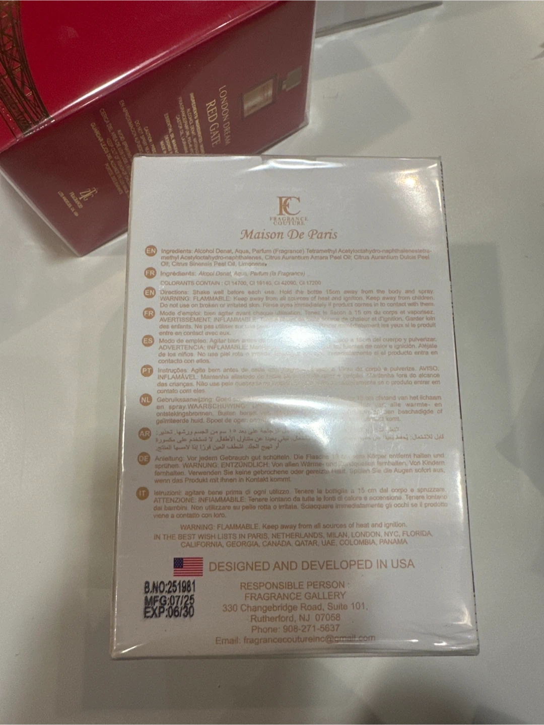 Maison De Paris Amber Vanilla Extrait de Parfum. Natural spray, vaporisateur. Contains Alcohol Denat, Aqua, Parfum (Fragrance). Spray bottle is 100ml or 3.4 fl.oz. Made in France. MFG: 07/25.