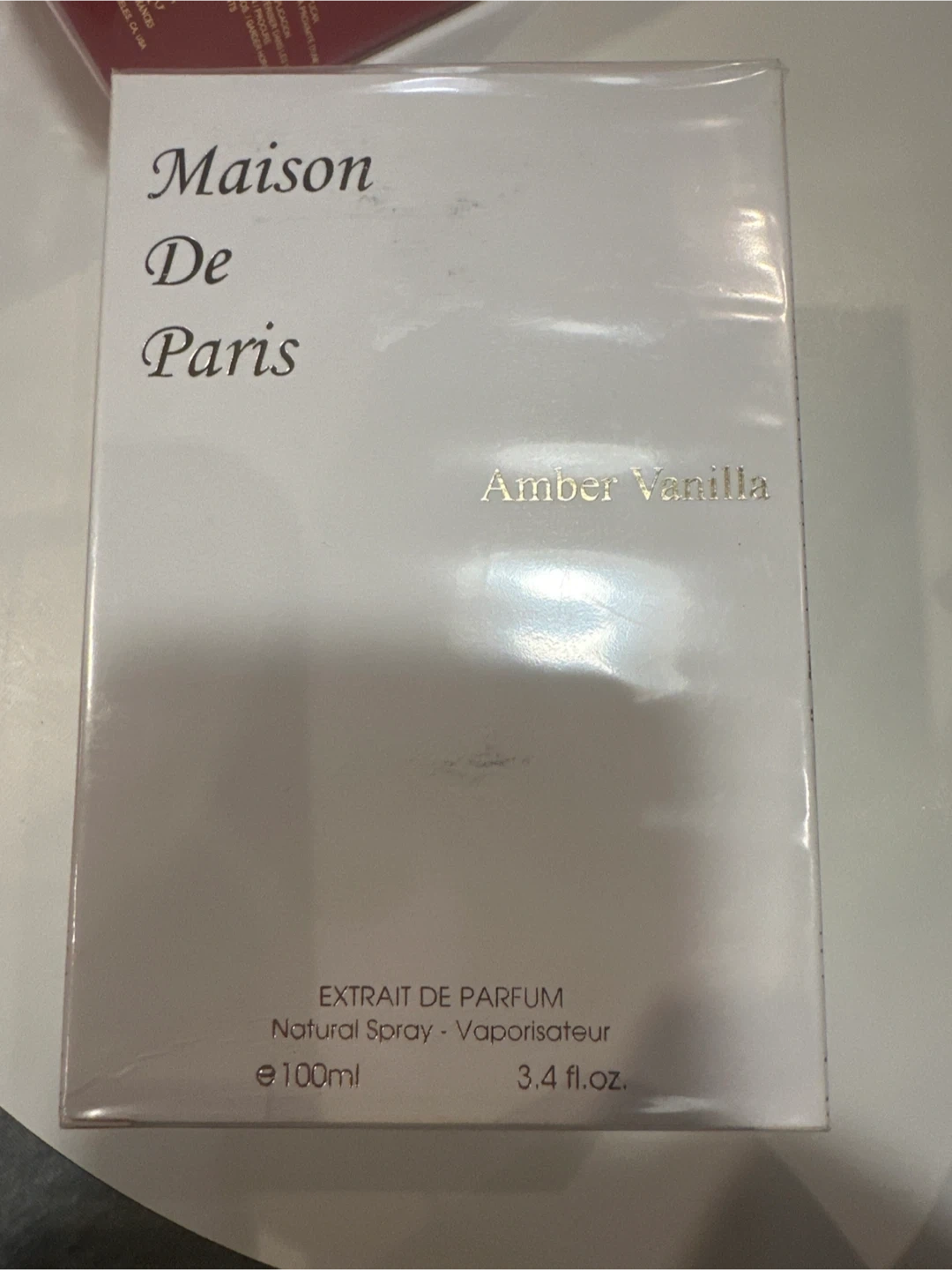 Maison De Paris Amber Vanilla Extrait de Parfum. Natural spray, vaporisateur. Contains Alcohol Denat, Aqua, Parfum (Fragrance). Spray bottle is 100ml or 3.4 fl.oz. Made in France. MFG: 07/25.