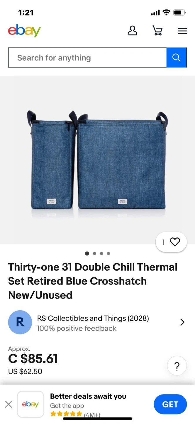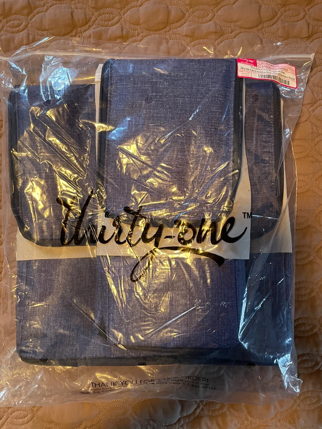 This is a retired blue crosshatch double chill thermal set. Includes two insulated bags. They're great for keeping snacks or drinks cool on the go!