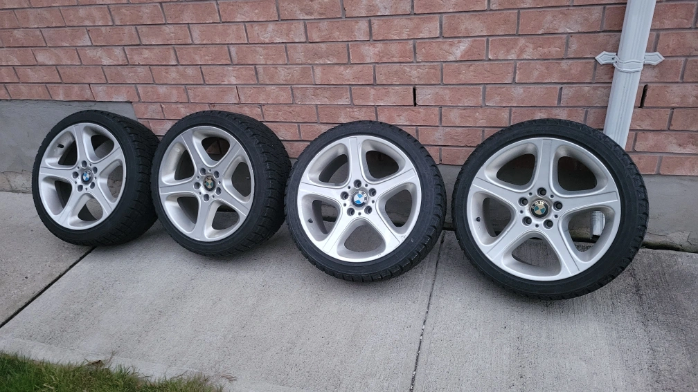 Bmw X5 Replica winter rims and tires. Tires have a 1000km or less on them practically new. Looking for a quick sale. No bends no cracks wheels are dead straight. They were on a E90 for a short amount of time with spacers. Do your own research on your fitment and application. 5x120 18x 8.5 (+45 offset) Tires: ANTARES Grip WP: 235/40R18 95H XL, manufacture date 16/21 $550 b.o