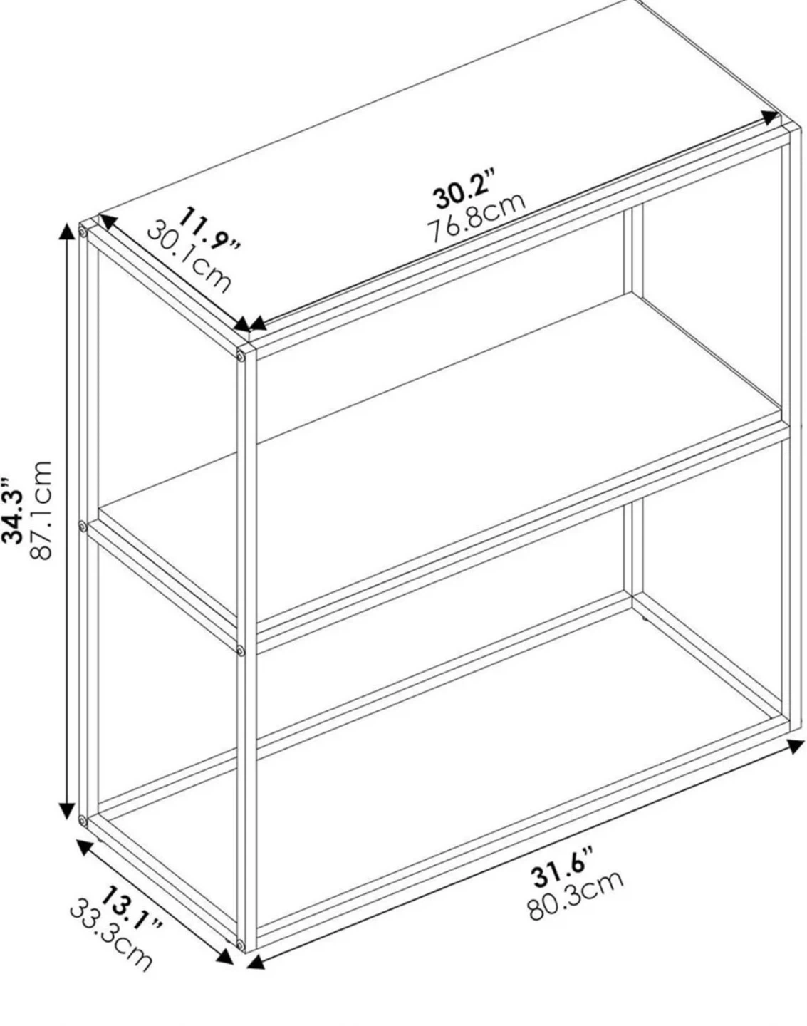 Selling a brand new 3-tier shelf unit! It's still in its original packaging, so you'll be the first to assemble it. The dimensions are approximately 34.3" (87.1cm) in height, 31.6" (80.3cm) in width, and 13.1" (33.3cm) in depth. The top measures about 30.2" (76.8cm) by 11.9" (30.1cm). Perfect for adding some extra storage and style to any room