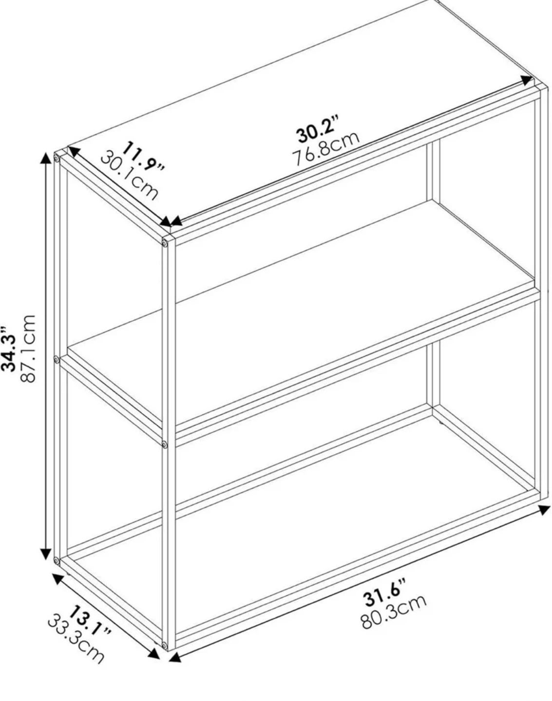 Selling a brand new 3-tier shelf unit! It's still in its original packaging, so you'll be the first to assemble it. The dimensions are approximately 34.3" (87.1cm) in height, 31.6" (80.3cm) in width, and 13.1" (33.3cm) in depth. The top measures about 30.2" (76.8cm) by 11.9" (30.1cm). Perfect for adding some extra storage and style to any room