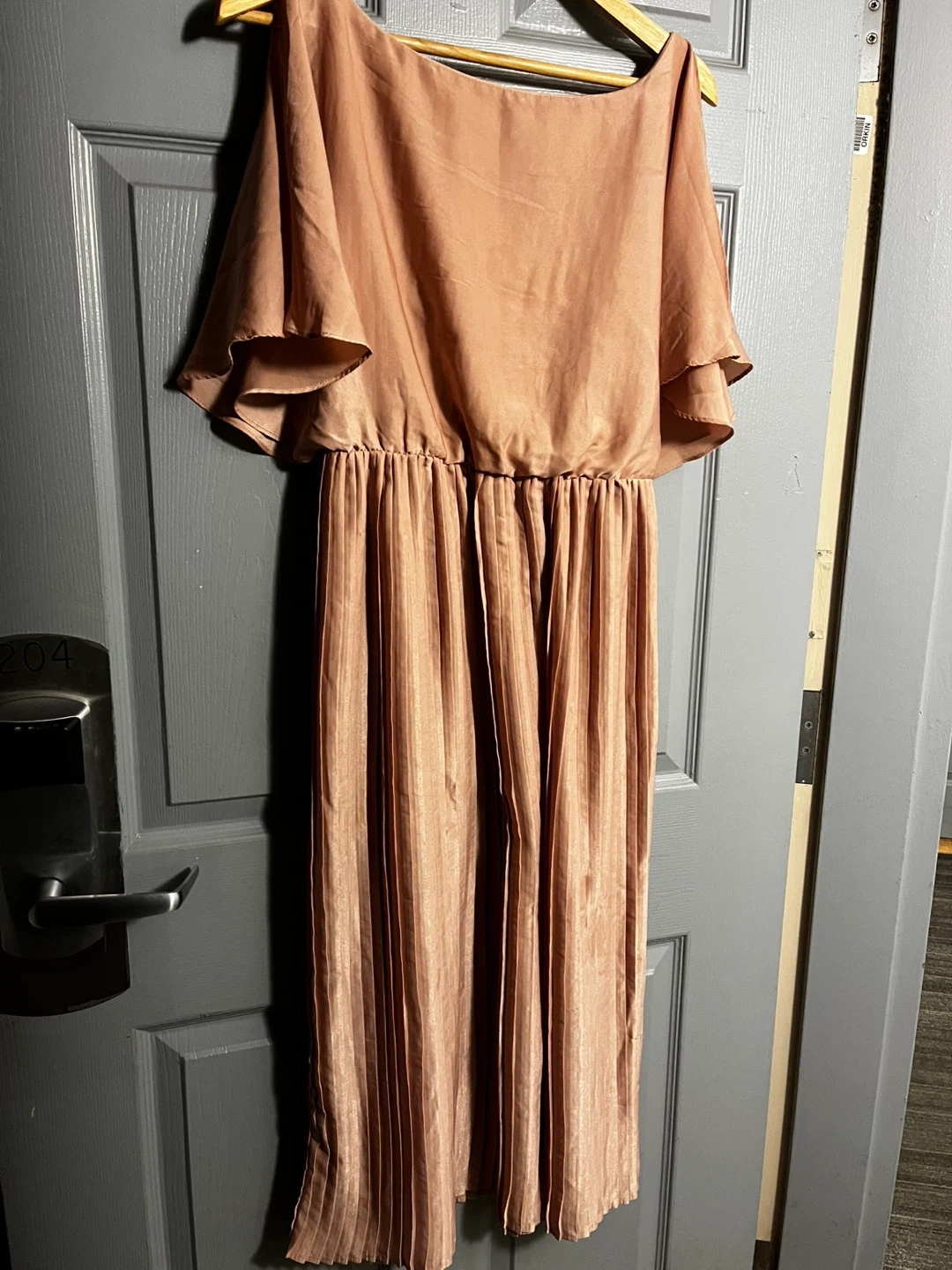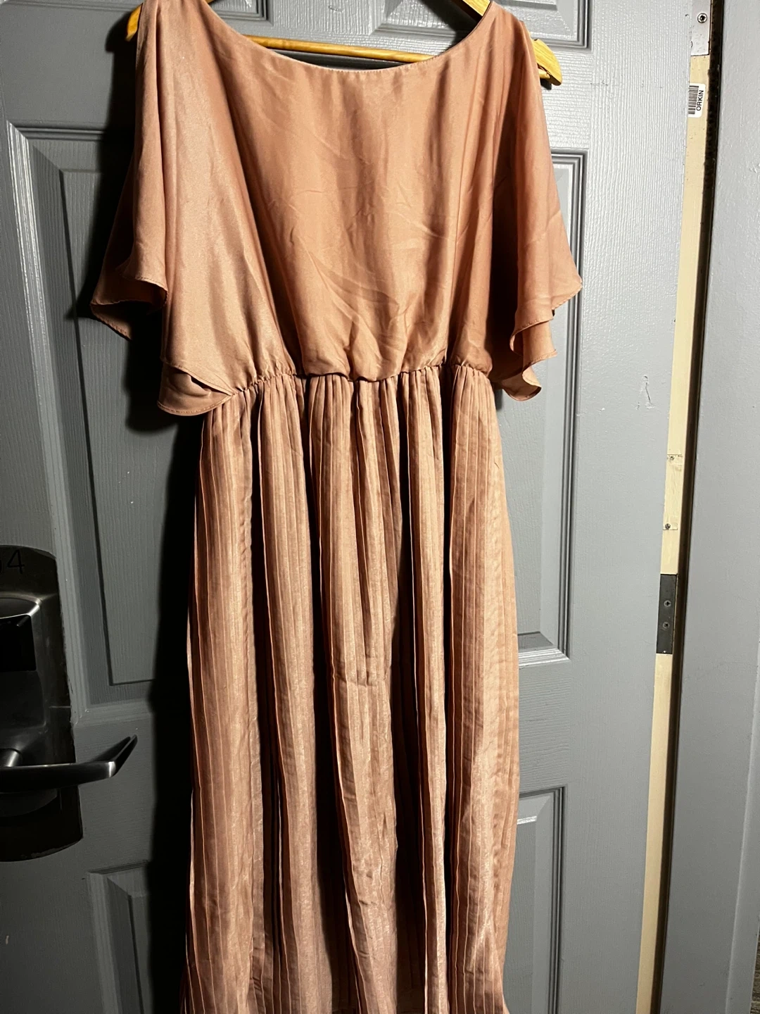 š¤The dress has a flowy, pleated skirt and flutter sleeves, perfect for a special occasion or a night out