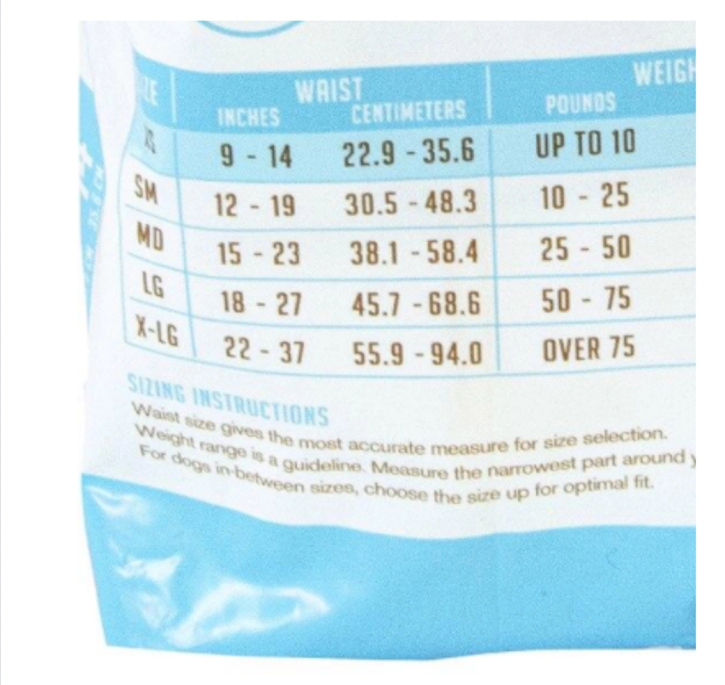 6 diapers, size small, 12-19 inches waist, for dogs up to 25 lbs.