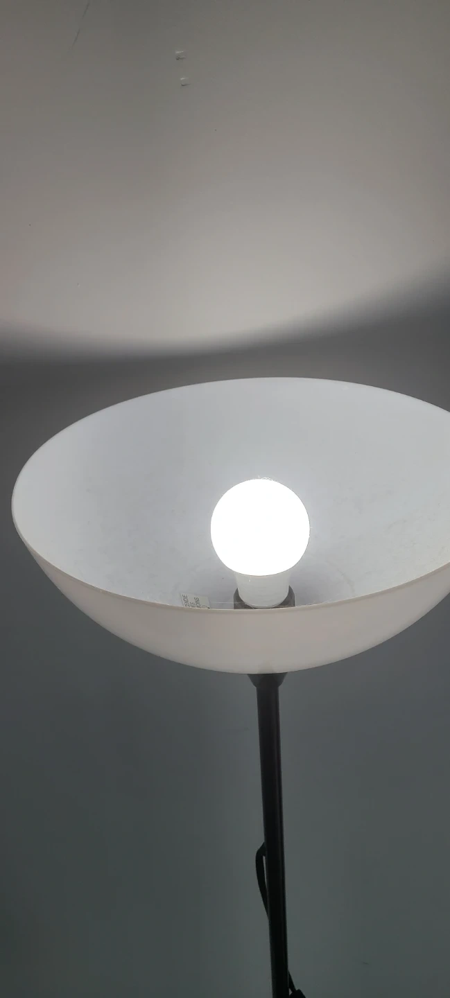 This black floor lamp features a frosted dome shade for soft, diffused lighting. The slim design makes it a great addition to any room needing extra light. Simple on/off switch on the cord.
