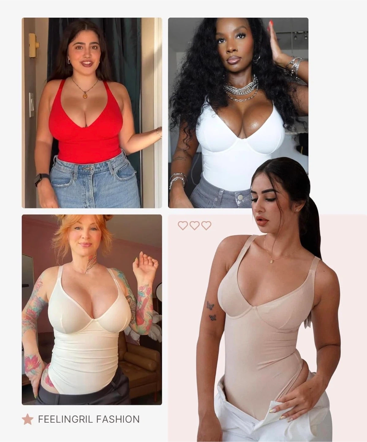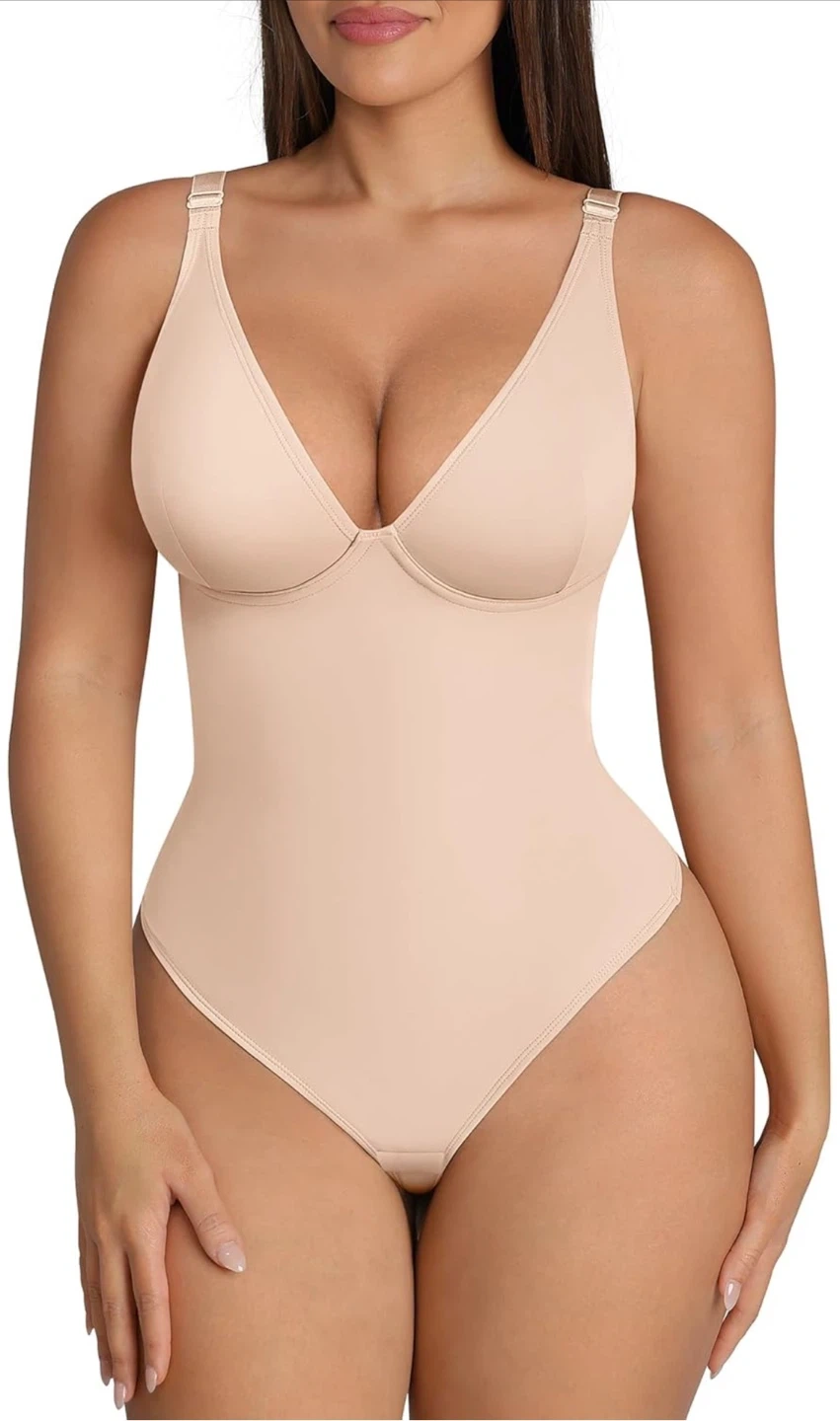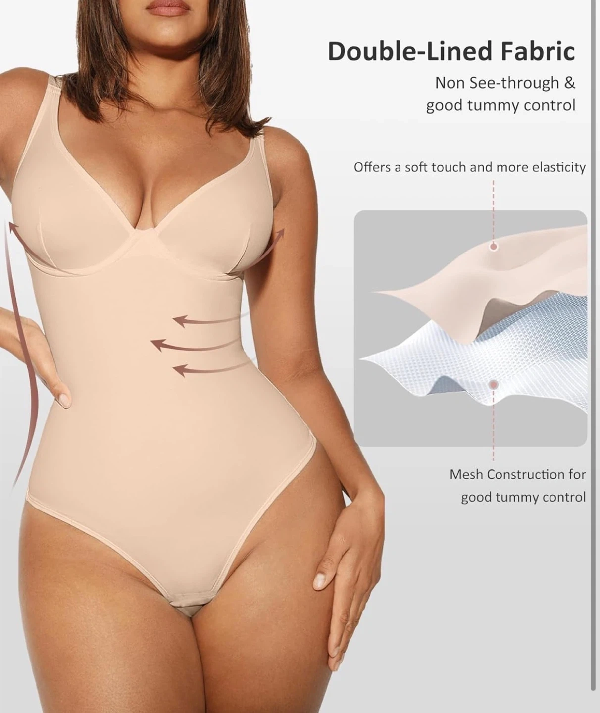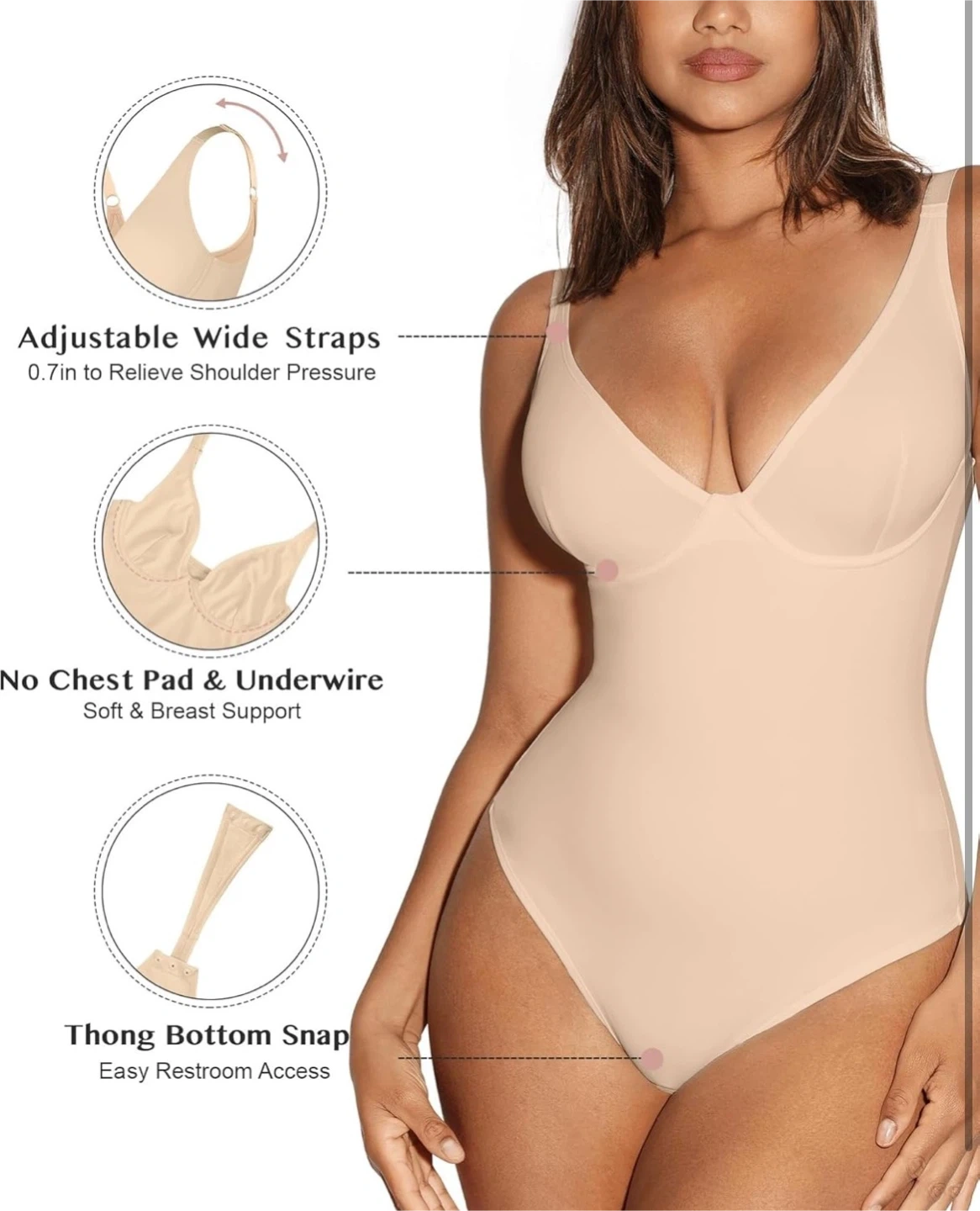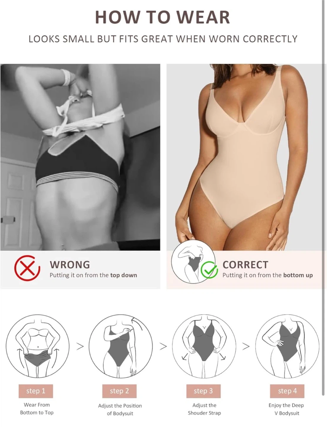 [Deep V Neckline and Low-Back Design] This women's bodysuit features a deep V-neckline and underwire compression bar cups that enhance the collarbone and neck for a chic look. It accentuates the bust silhouette, emphasizing your stunning hourglass figure. The large U-shaped design on the back beautifully contours your body, enhancing your silhouette with any outfit. Wear it discreetly under your clothes or flaunt it as a stylish top.
