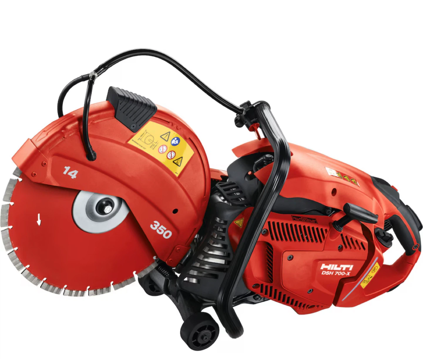 This is a Hilti PRO Gas Concrete Saw. It features a 16" blade and a 400 model number. This saw is gas-powered.