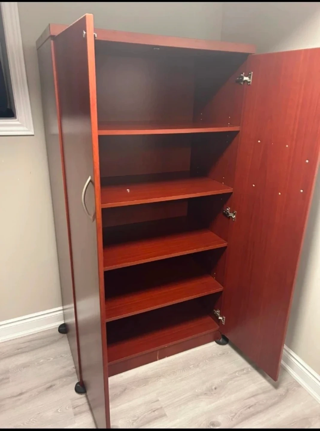 Buy & SellWood Cabinet with Doors and ShelvesWood Cabinet with Doors and Shelves$72A double-doored wood cabinet with multiple shelves. It's a nice cherry wood colour. Great for storage in an office or home!ConditionLike newWHERE TO MEET1645 Simcoe St NView MapSELLERverifiedMahwish ShabbirSamac1016 reviews2 chats·0 favorites·36 viewsSEND CHAT TO SELLERHi Mahwish Shabbir! I’m interested in your listing.Hi Mahwish Shabbir! I’m interested in your listing.Get the Karrot app to chatSign In to chat