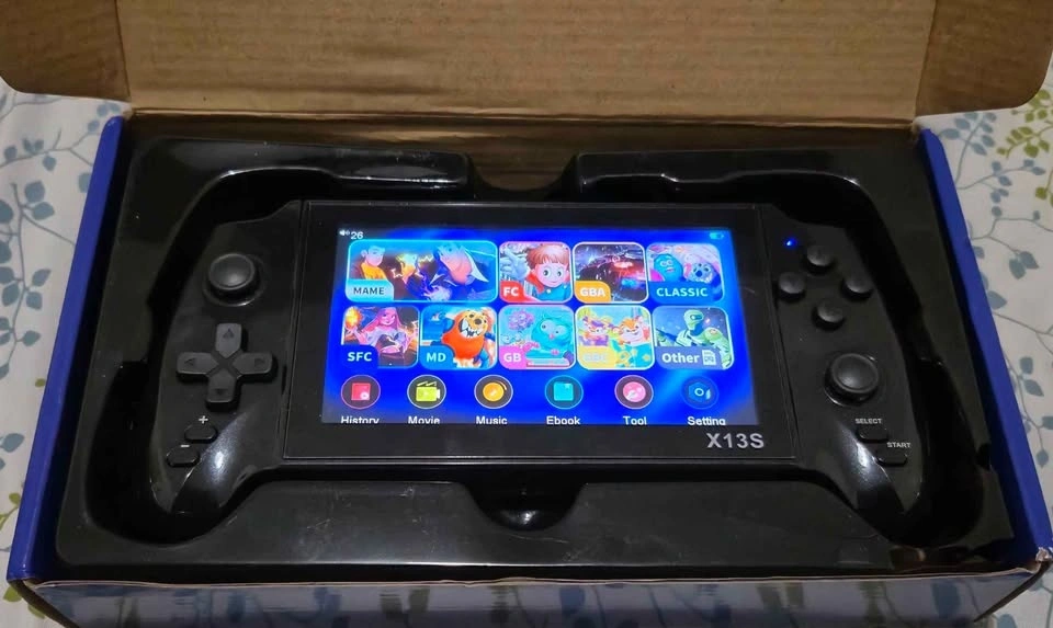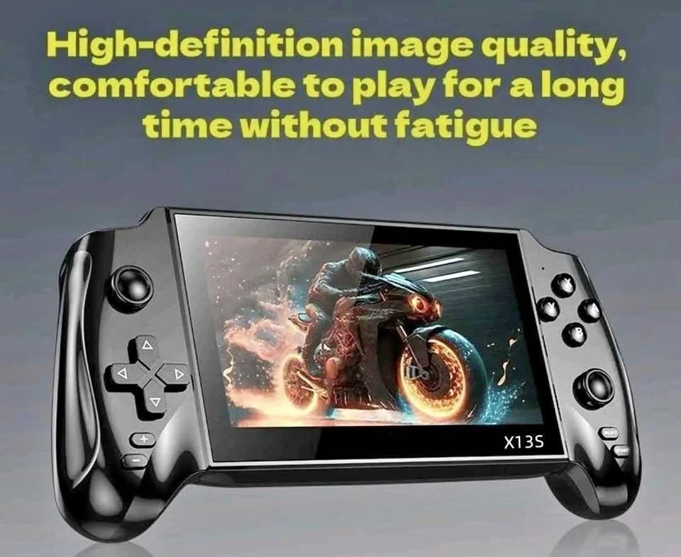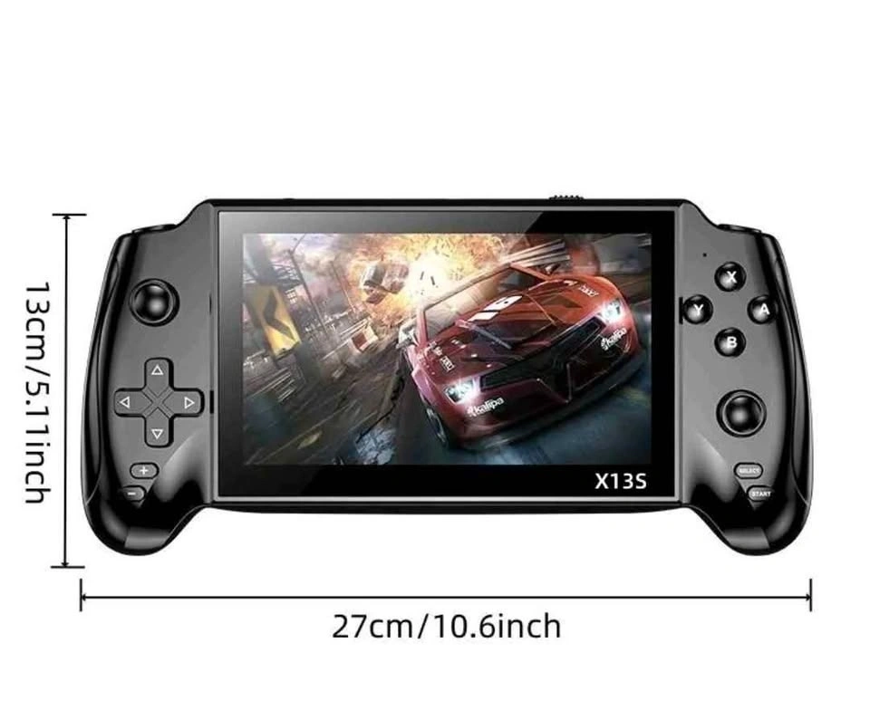 Retro handheld gaming console with a 5.5-inch HD IPS screen. Features include TXT ebook reader, Linux system, TV output, over 15000 games, external gamepad support, and music playback.