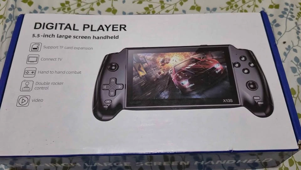 Retro handheld gaming console with a 5.5-inch HD IPS screen. Features include TXT ebook reader, Linux system, TV output, over 15000 games, external gamepad support, and music playback.