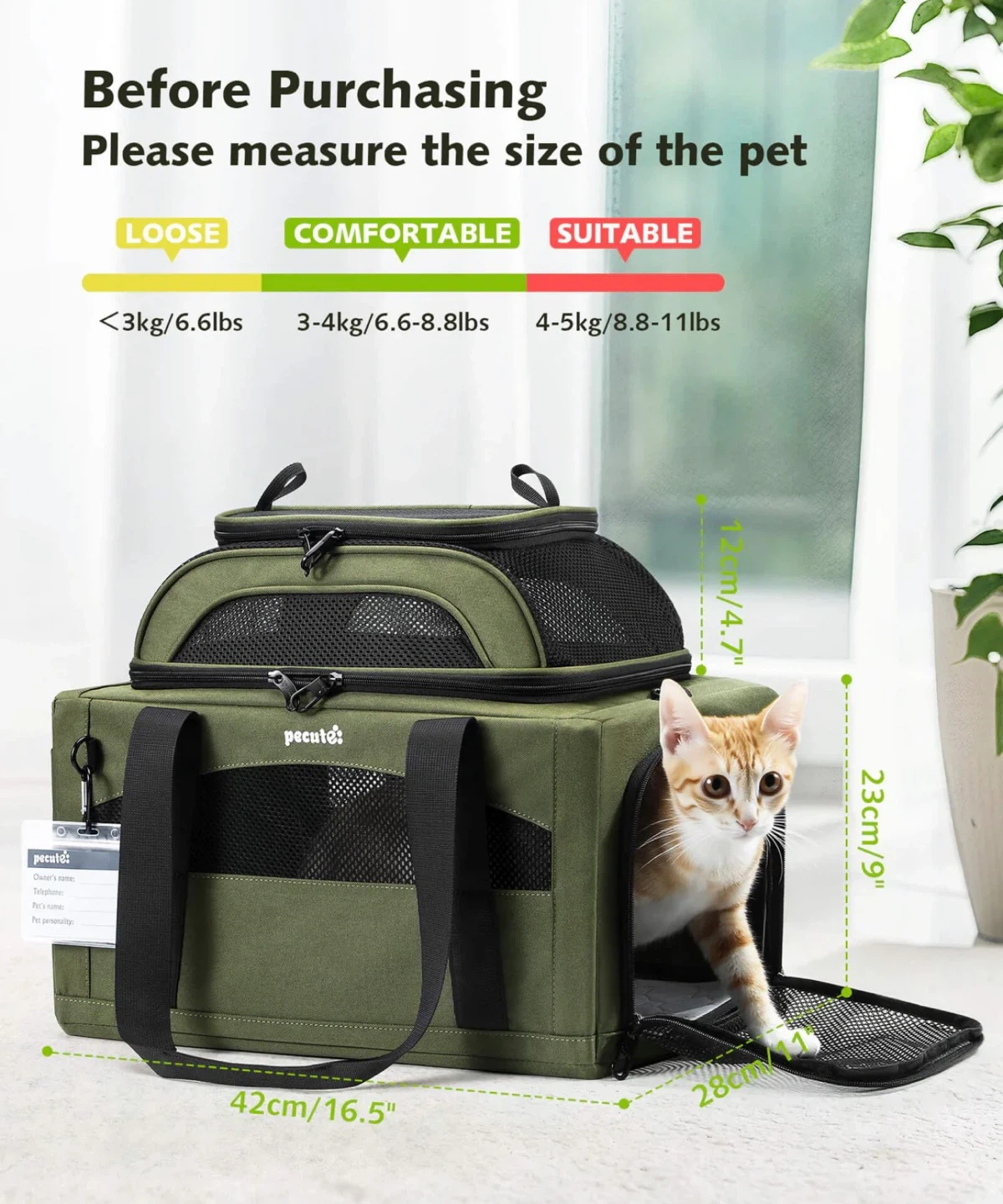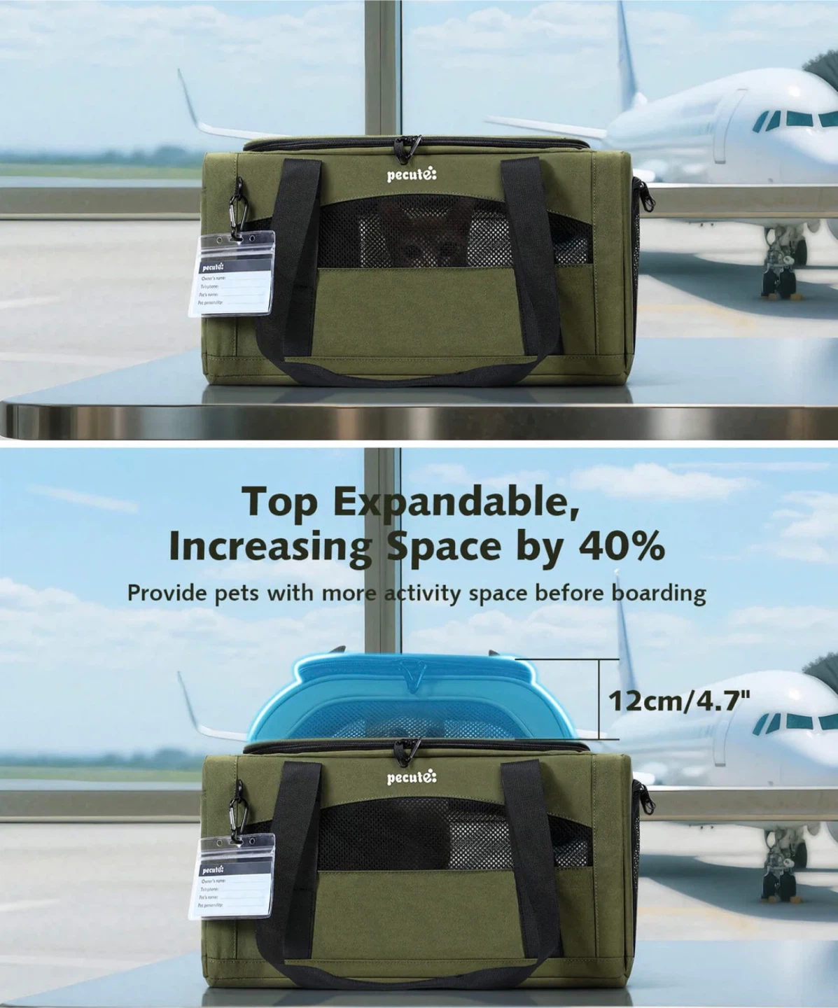 Pecute Airline Approved Expandable Pet Carrier Dog Cat Carrier with Leakproof Pee Pad