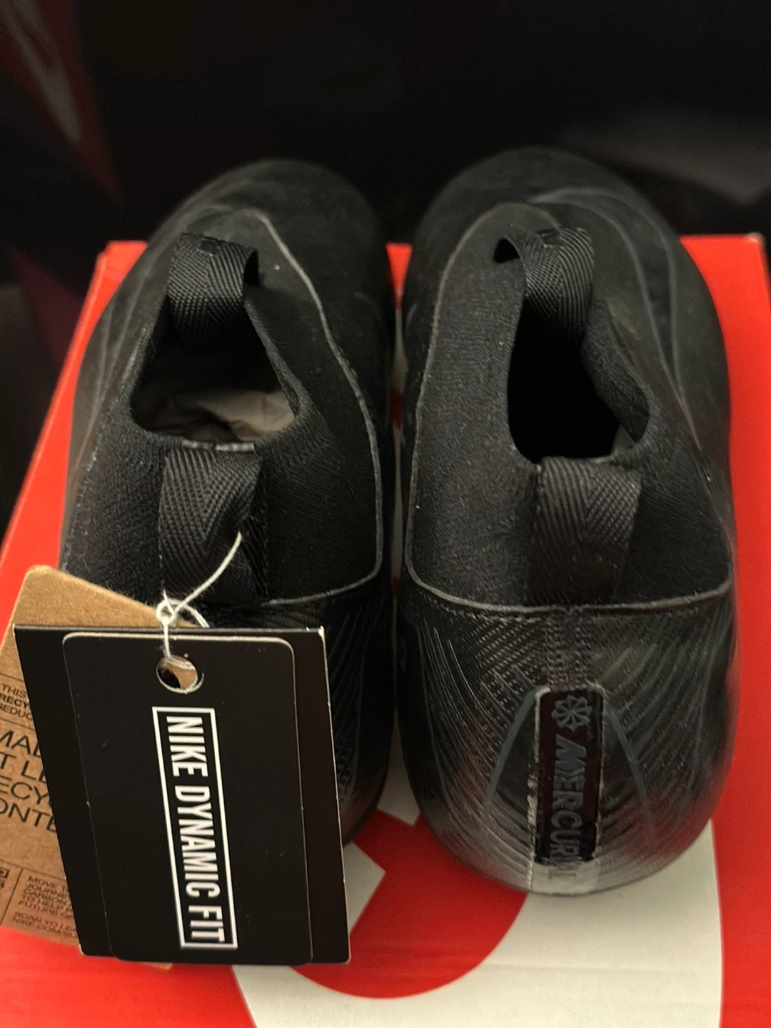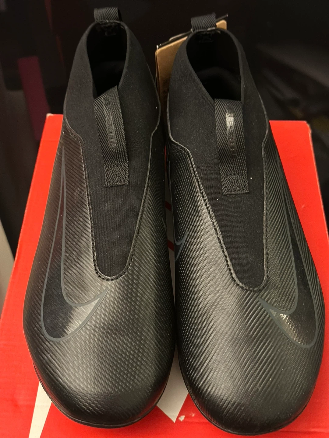 Black Nike Mercurial soccer cleats. These cleats feature a dynamic fit collar and a laceless design for a streamlined feel. Great for playing soccer!
