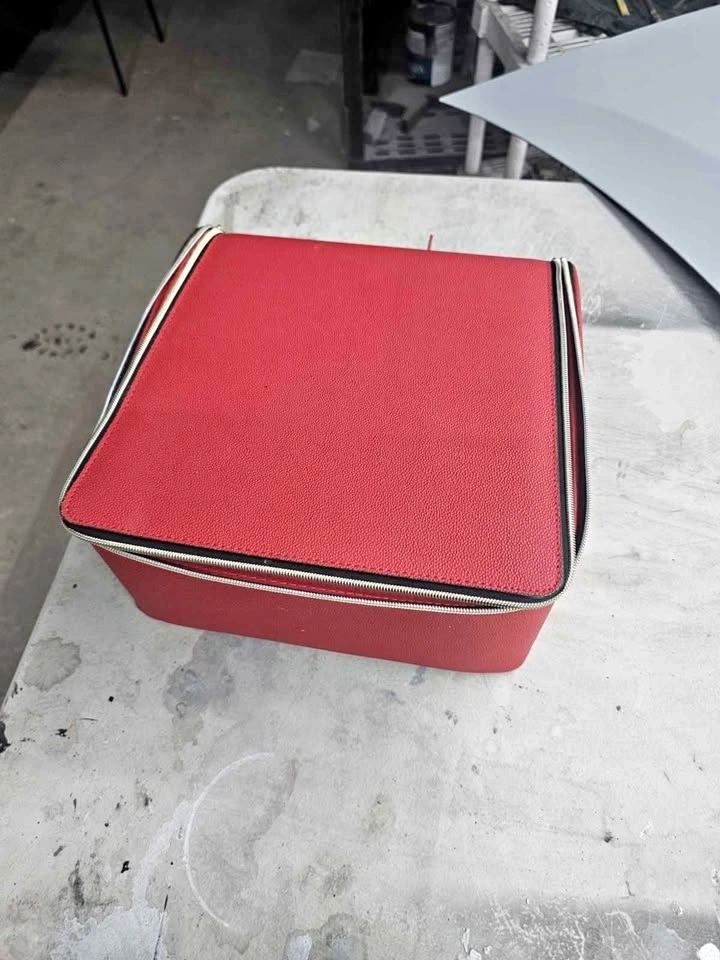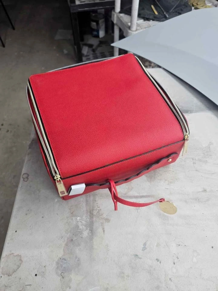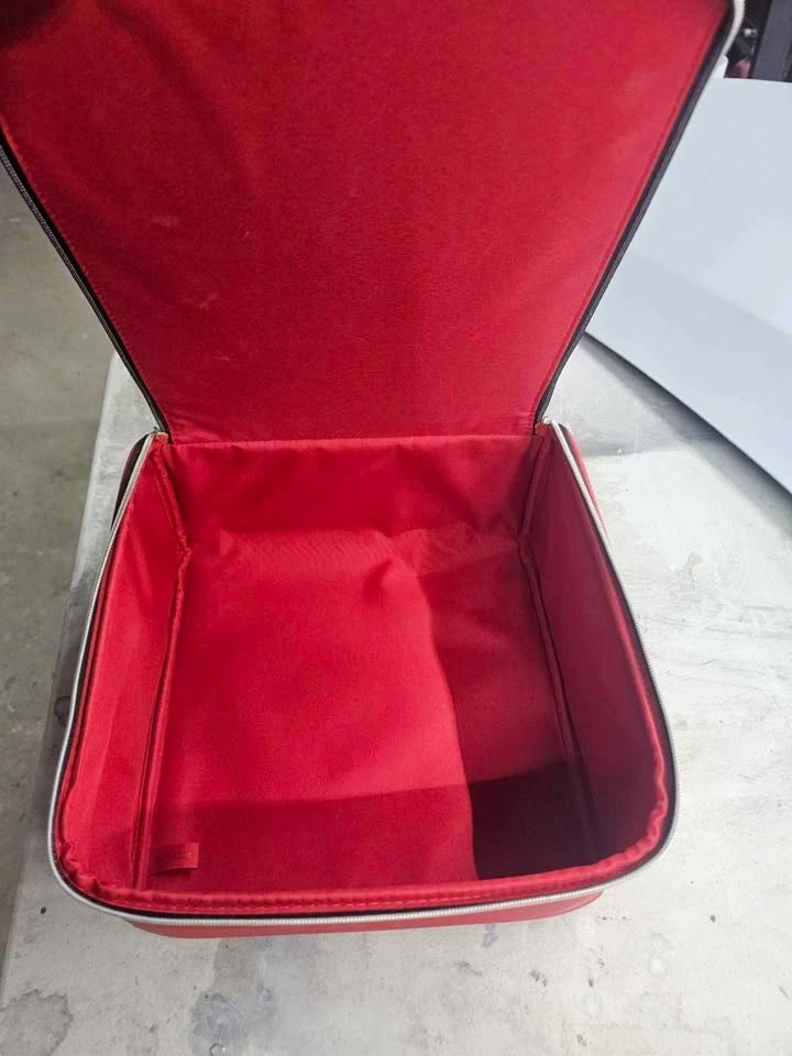 Stylish red cosmetic / makeup travel case. Spacious and clean inside. Zipper closure. Great for travel or everyday use. Good condition.
