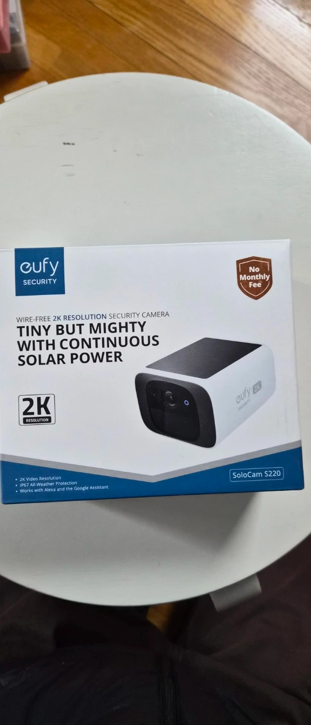 This is a Eufy Security SoloCam S220 wire-free 2K resolution security camera. It offers continuous solar power and has 2K video resolution. The camera is small but mighty, making it a convenient addition to your home security setup.