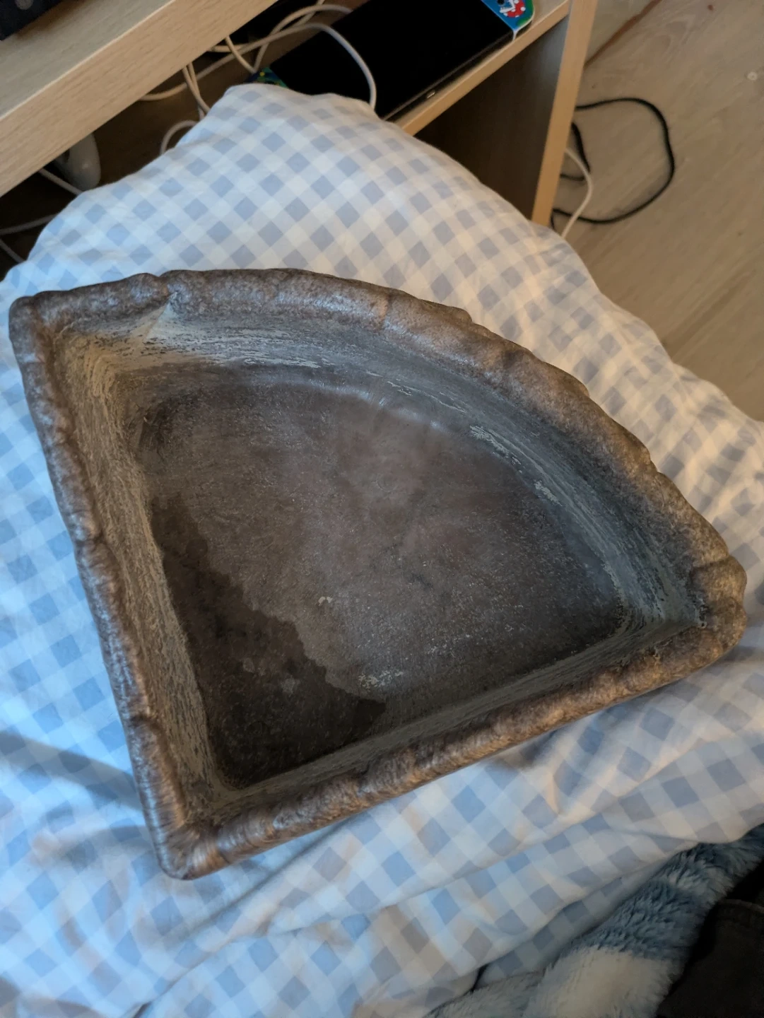 This is a reptile water dish with a natural rock-like appearance. It's made of durable resin and is easy to clean. Suitable for small to medium-sized reptiles.