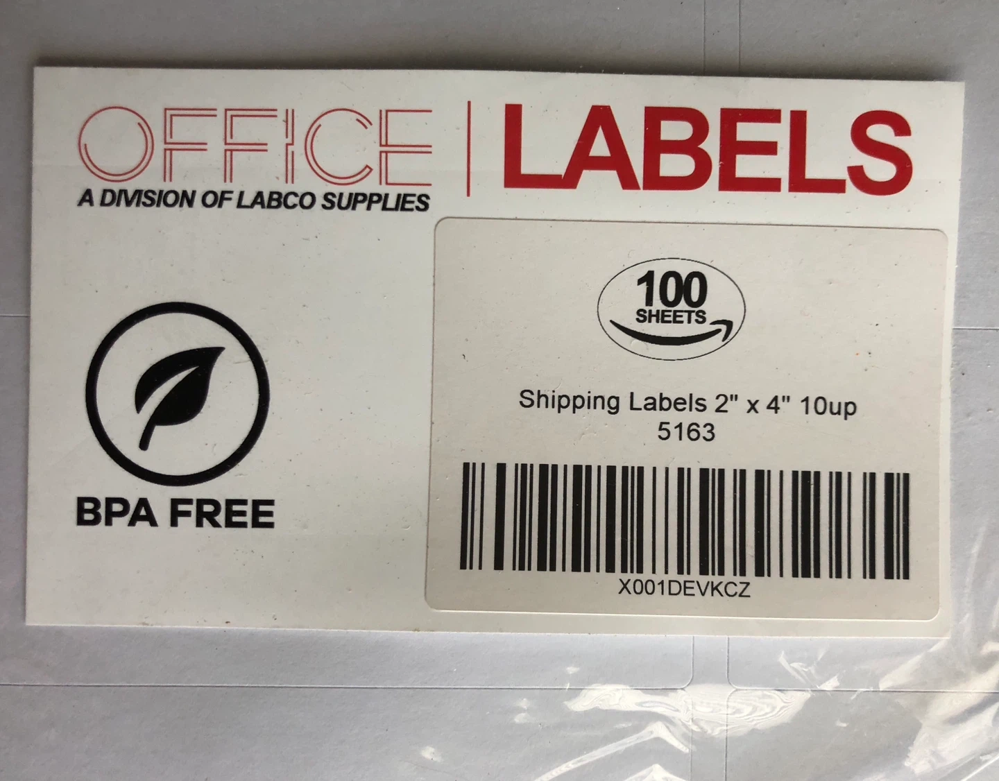 Shipping labels from Office Labels. BPA free. Labels are 2 inches by 4 inches and come 10 per sheet.