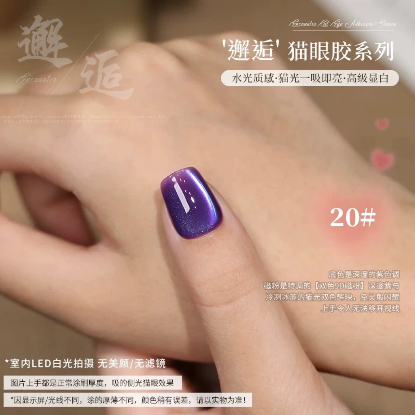90I'm selling brand new Encounter Cat Eye gel polish! These have a glassy water-like texture and high pigmentation for a bright, shiny finish. Available in a variety of colours. Price is per bottle. HEMA-free and TPO-free.