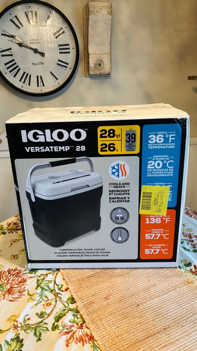 24Travelling for a holiday dinner and need a solution for keeping a food dish warm? This Igloo Versatemp 12v electric cooler/warmer will keep your food warm up to 136 degrees Fahrenheit for the duration of your drive! Currently on sale at Canadian Tire for $249.93 plus tax (regular price $364.99). This one is brand new and has never been used. The box is still factory sealed! The Igloo Versatemp™ 28 Qt Portable Electric Cooler is designed for ultimate versatility, offering both cooling and warming modes for your on-the-go needs. This portable electric cooler requires no ice to chill contents, keeping food and drinks ready for any adventure. Its compact and durable design makes it ideal for road trips, camping, or tailgating, ensuring you have a reliable solution for keeping items cool or warm as needed. Features Cool Riser Technology® that improves cooling performance by elevating away from hot surfaces. Cools interior (without ice) up to 36℉ below ambient temperature. Ergonomic curved back design comfortably hugs your side while carrying. Holds 39 cans. Swing-up bale handle with comfort grip and molded-in side handles. Plugs into any 12V auto plug adapter. Spacious 26.5-L capacity for ample storage
