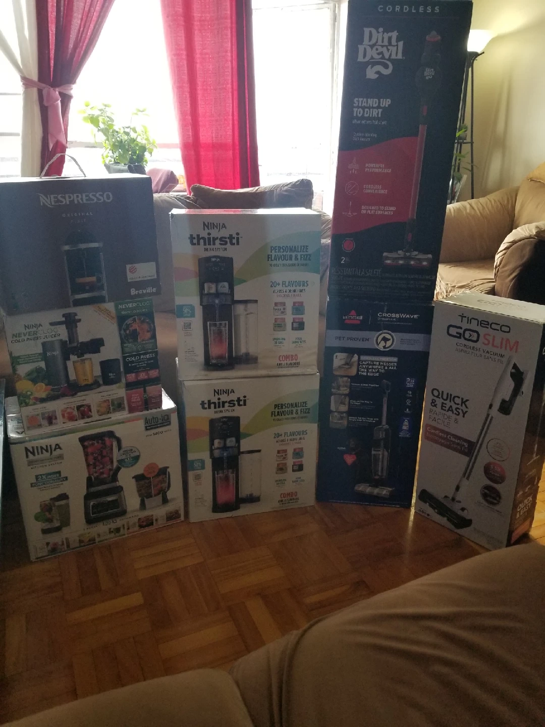 18Brand New In Box, Kitchen & Home Appliances. SOLD: DIRT DEVIL STICK VAC NESPRESSO PIXIE NINJA JUICER NINJA PRO PLUS BLENDER TINECO VACUUM What I'm selling for and retail price along with model #'s provided below. 1) Bissell Crosswave Omniedge Vac Asking for $300 or best offer. $349, $394.37 after tax Model # 4125D 2) Ninja Thirsti Asking for $150 for 1, $275 for both. $249.99, $282.48 after tax on Ninja's website. $196 for one on Amazon. Model # WC1001C Pick up is available near Markham and Eglinton in Scarborough. Delivery is available but for a fee.