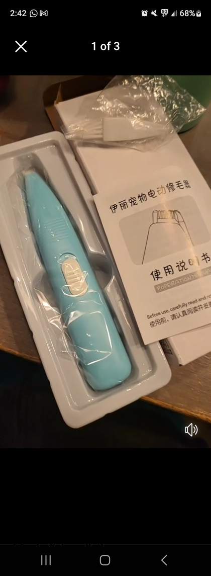 53blue pet hair trimmer good for small area like paw and face brand new, blue, include instructions and mini brush for cleaning. use AAA batteries x 2 pick up Markham 16/9