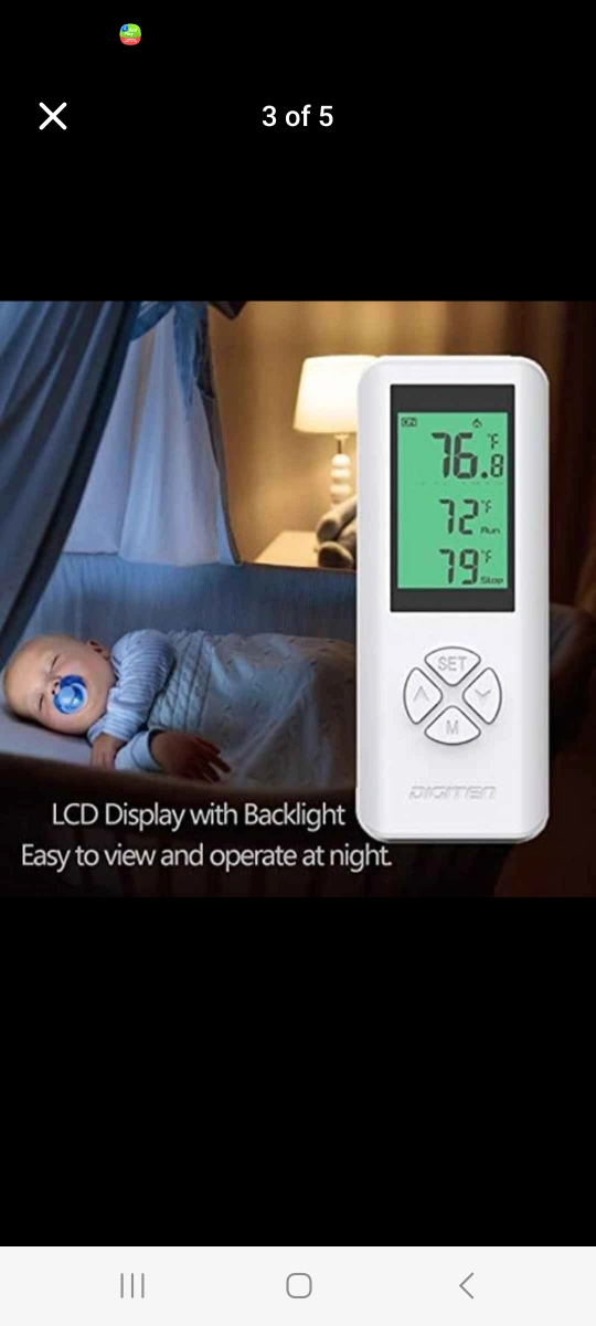27Programmable thermostat with LCD display and remote. Works with window air conditioners, heaters, and more. Easy to use, plugs into standard outlet. Includes temperature sensor.