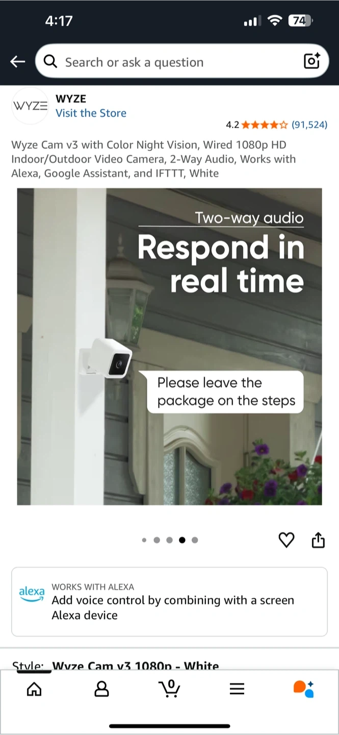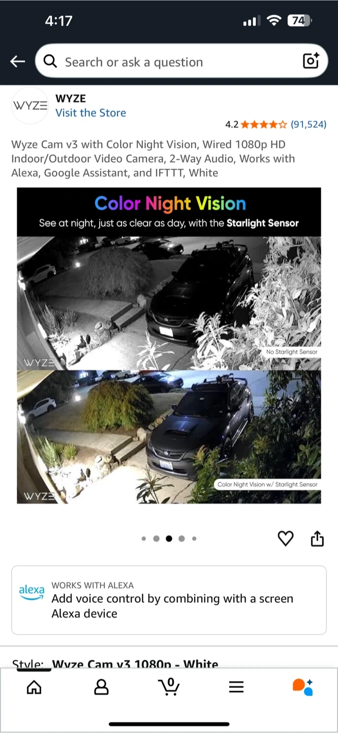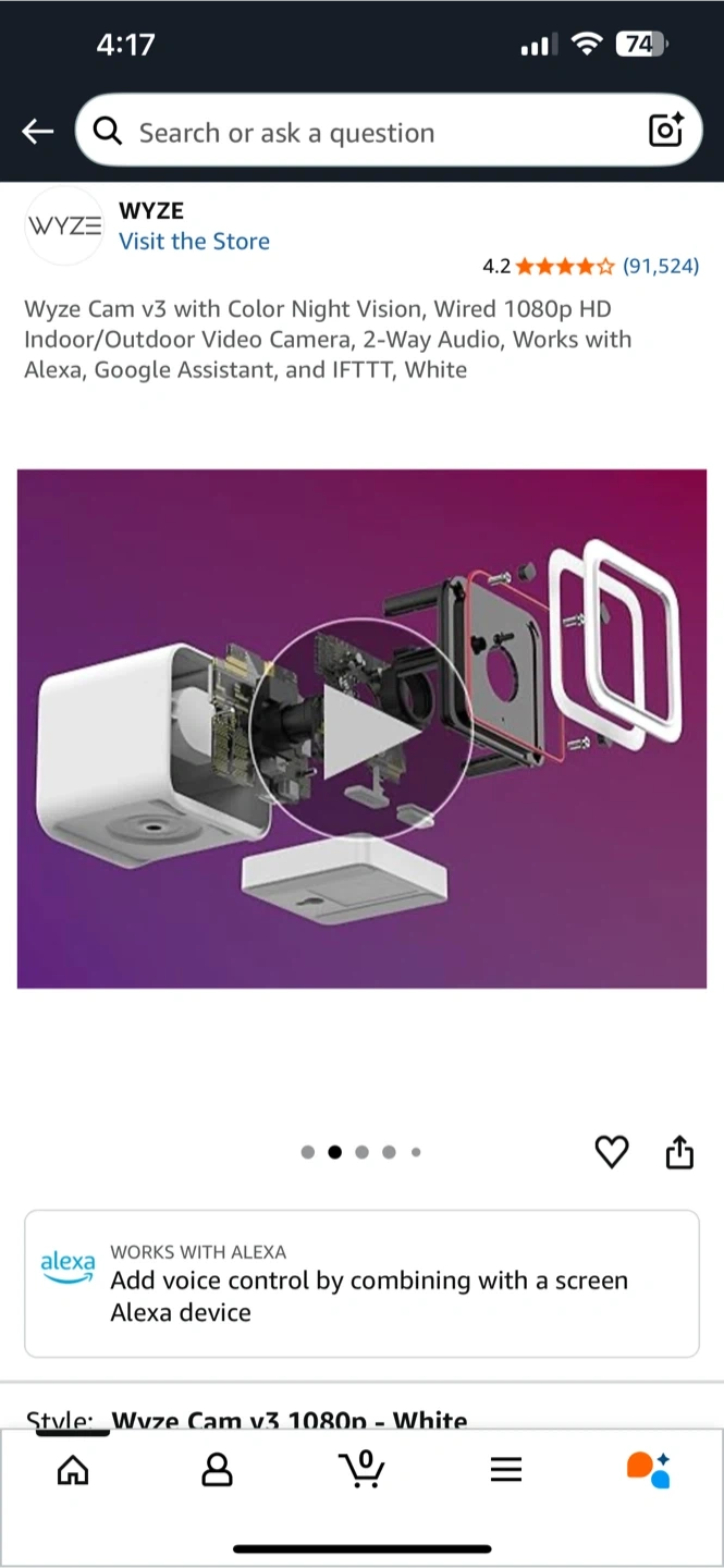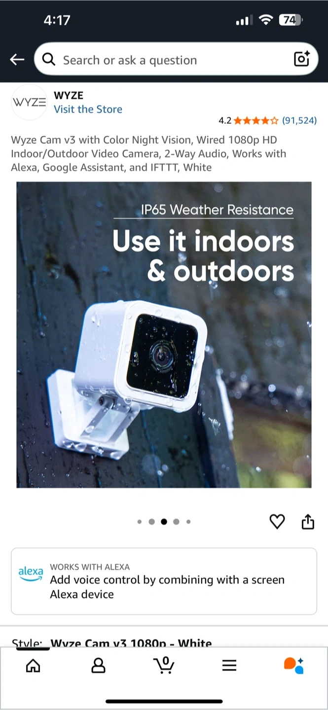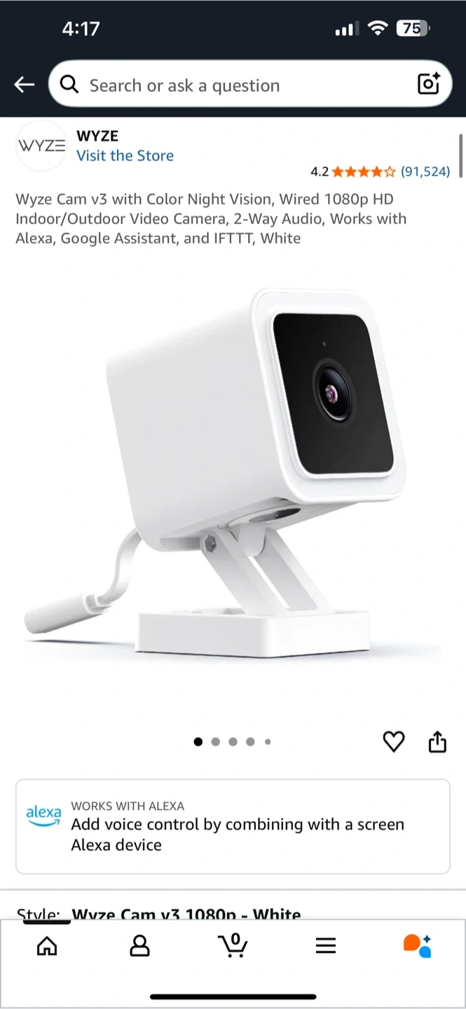 1000+Selling a Wyze Cam v3, perfect for keeping an eye on things indoors or outdoors! It features: - Color Night Vision, so you can see clearly even in low light - Wired 1080p HD video for crisp, clear footage - Two-way audio, allowing you to respond in real-time - Works with Alexa and Google Assistant for easy integration with your smart home Brand new in box in original packaging never used or taken out of box