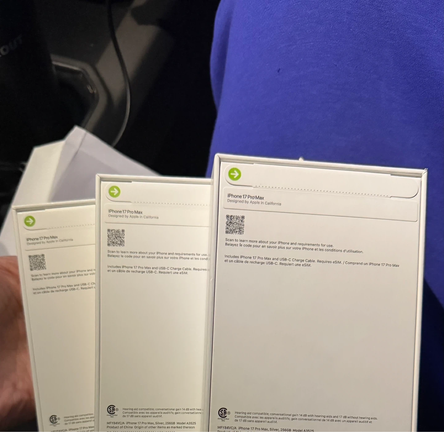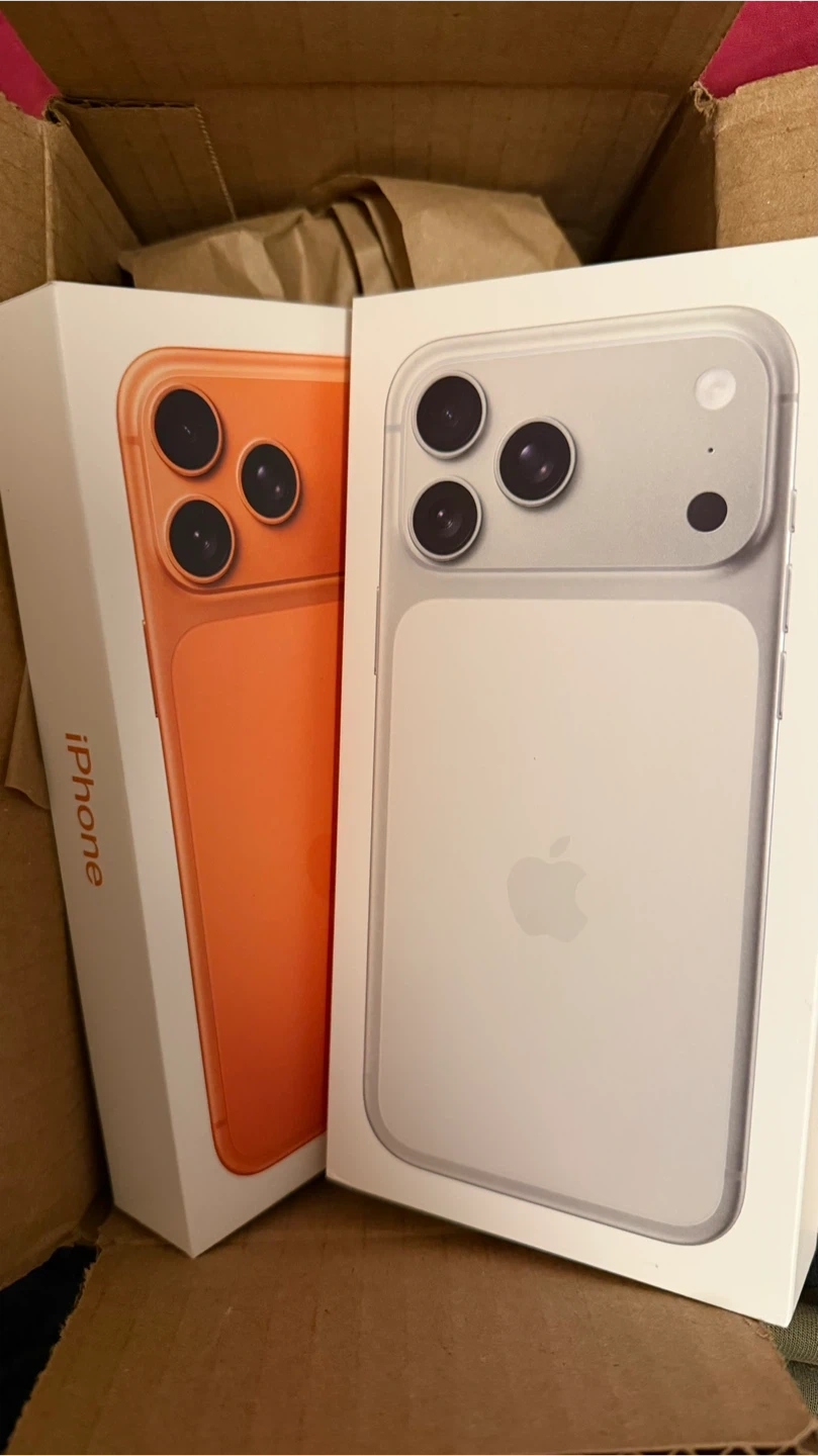 18Brand New In Sealed Box UNLOCKED to all carriers 256GB Silver - $1700 FIRM $3300/2 FIRM 1TB Silver or Cosmic Orange - $2300 FIRM $4500/FIRM Free tempered glass on front and camera (after you open the sealed box and activate/check over everything) Can also supply a case. Meet in person, activate your e-sim. Unrushed secure sale. 1 year Apple Warranty 60 days to buy AppleCare+ monthly/OTP 3 months free Apple TV+/ Music/News EMT or Cash