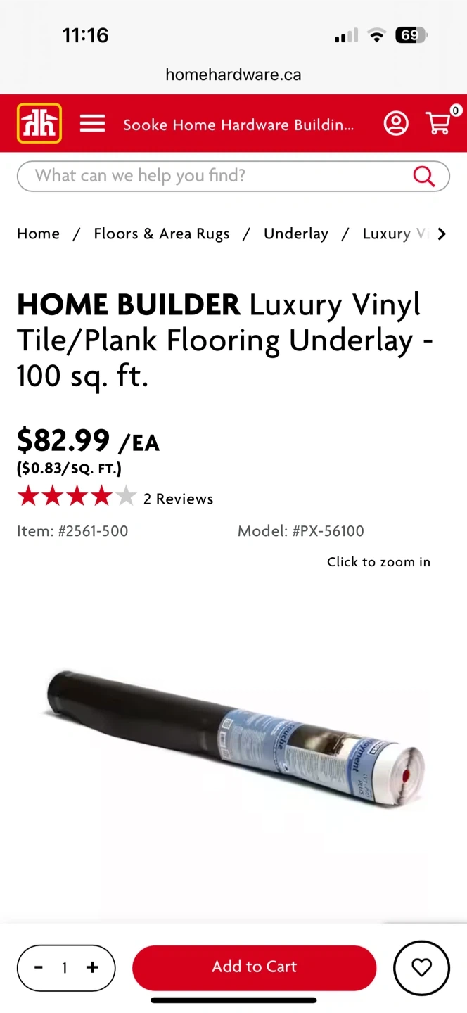 Selling HOME BUILDER Luxury Vinyl Tile/Plank Flooring Underlay, 100 sq ft. Model #PX-56100 unopened and then an almost full roll and then some random cuts. Originally priced at $82.99 a roll