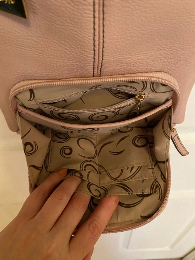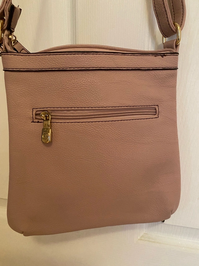 - purse has 1 exterior back pocket and 3 interior pockets