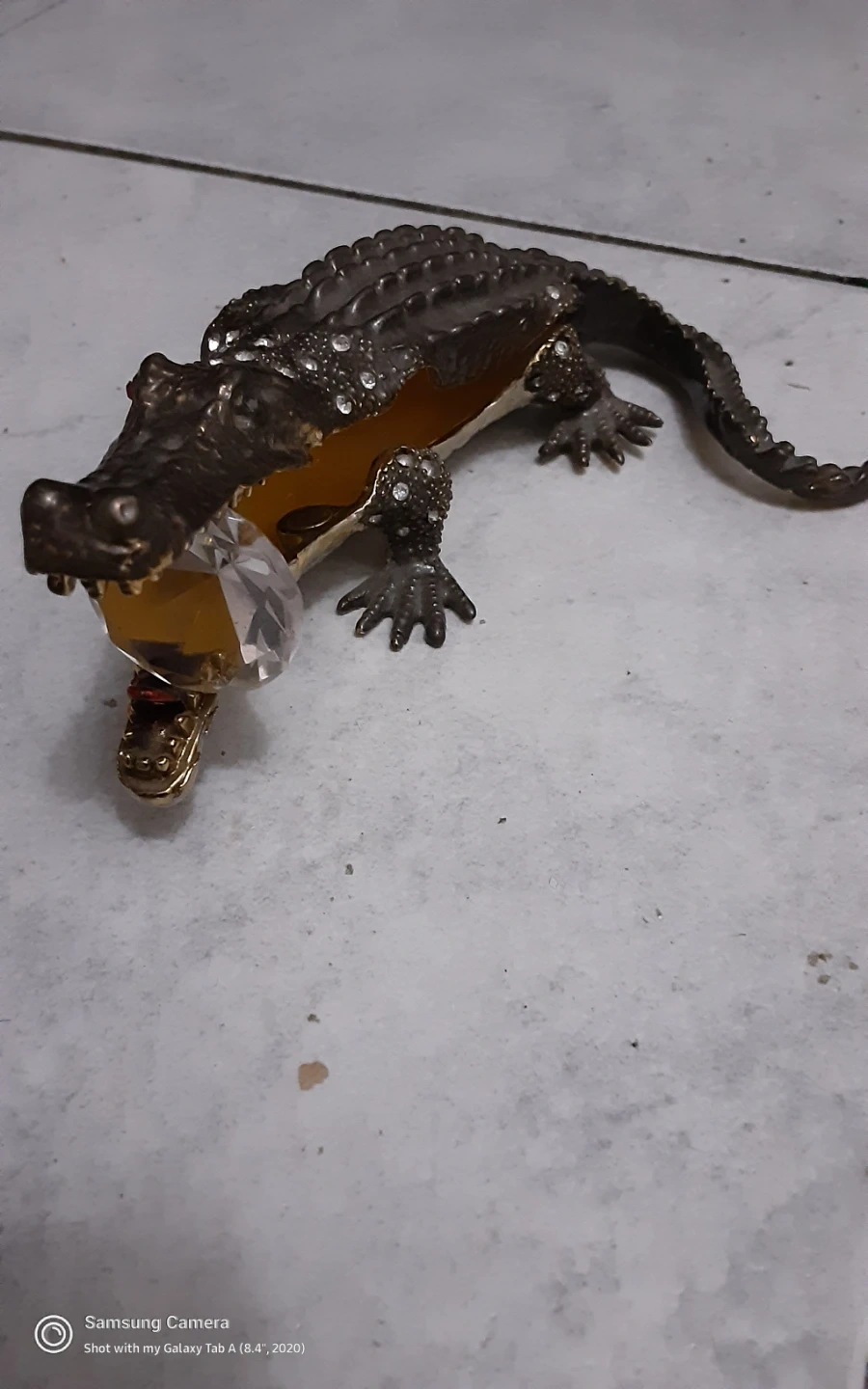 Selling a unique vintage crocodile trinket box! It's a charming little piece to hold your small treasures. The crocodile design is quite detailed and adds a touch of whimsy to any space