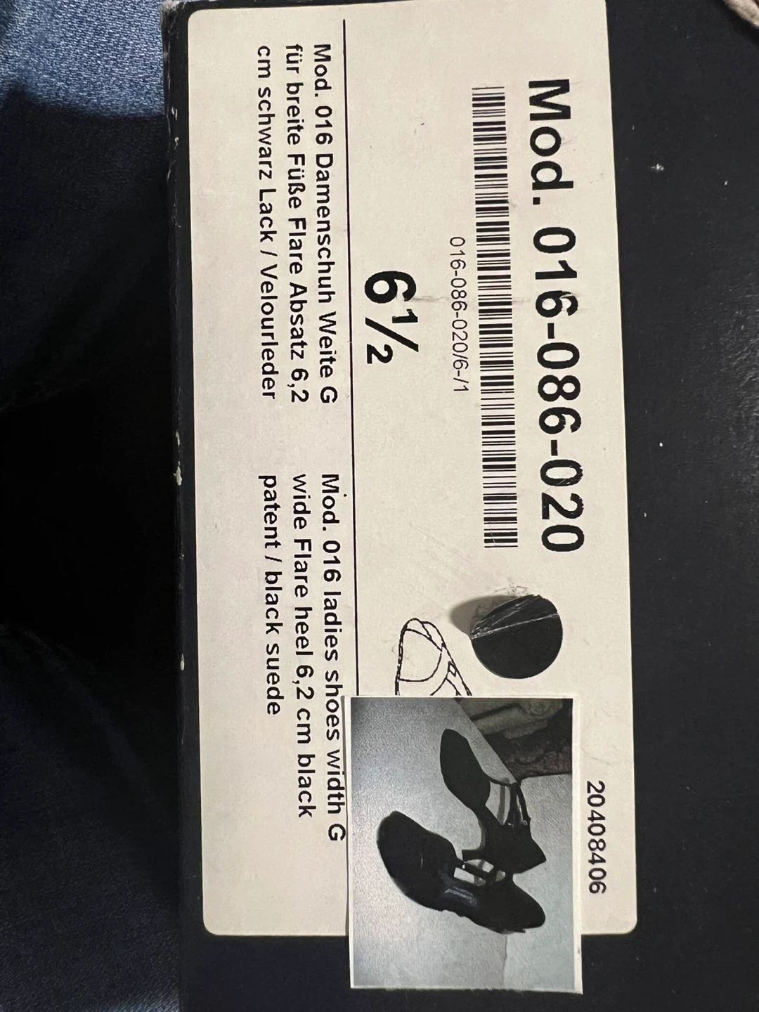These are high quality T-strap patent and suede, open toe, closed-heel ballroom sandals - in excellent and clean pre-owned condition. Heel tips are new. The suede on forefoot of sole still has life and can easily be replaced when needed (if you dance, you know). These were mine and I took good care of them. Made in Germany. Purchased at Stardust Dance Supplies in Brampton.