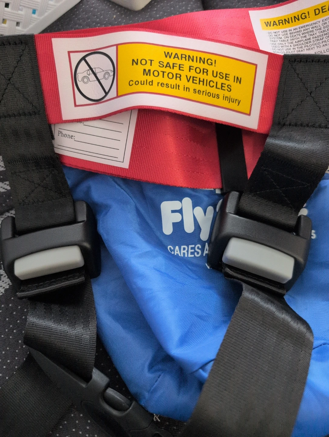 This is the CARES Child Aviation Restraint System. It's FAA approved and designed for use on airplanes. Not safe for use in motor vehicles.