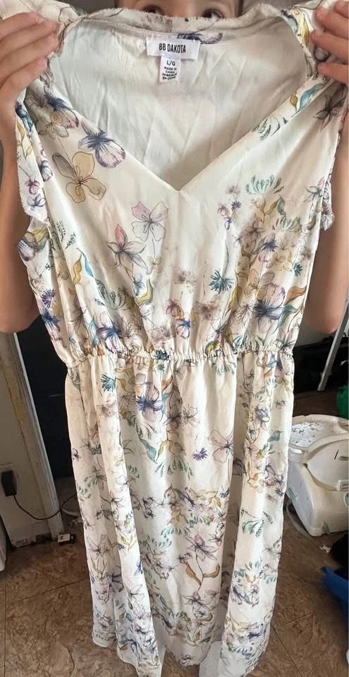 Women’s white light summer dress size large. Brand new without tags; just need gone. Couldn’t return as I threw receipt out. $20.