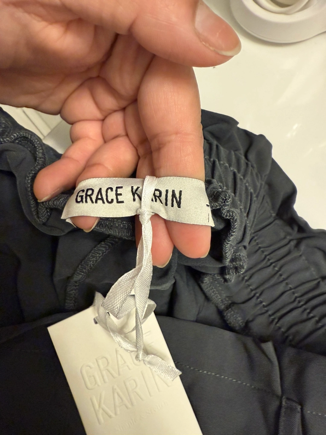 Brand new with tags. Grey color. Size large. Paper bag pants style.
