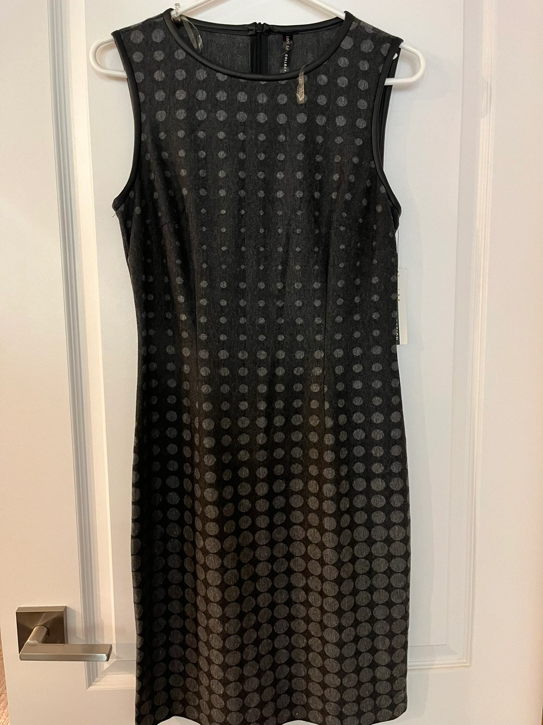 Stylish sleeveless dress. Grey with a polka dot pattern. Size small. new with tags.