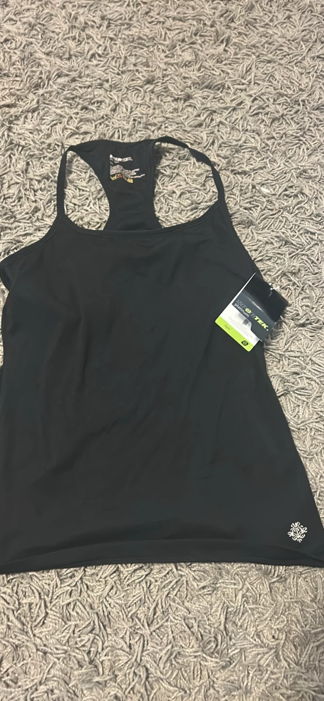 Selling a black SPORTEK Platinum tank top in size large. It's made of 66% polyester, 29% rayon, and 5% spandex. Perfect for workouts or casual wear! It's brand new with tags and ready for a new home