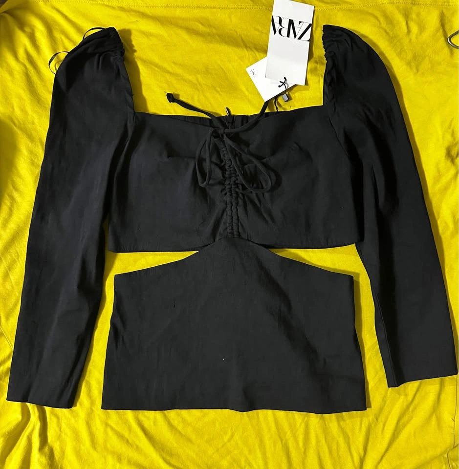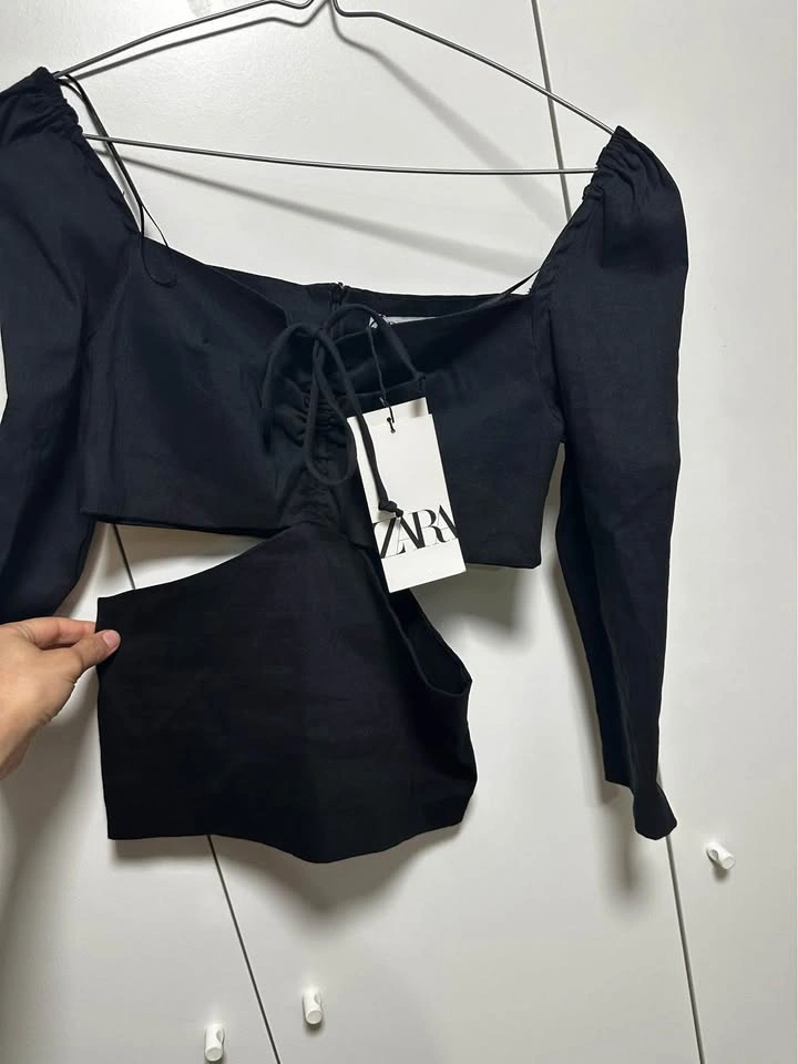 10BNWT Zara side cut out linen blend top. Size :- Xs Color :- Black