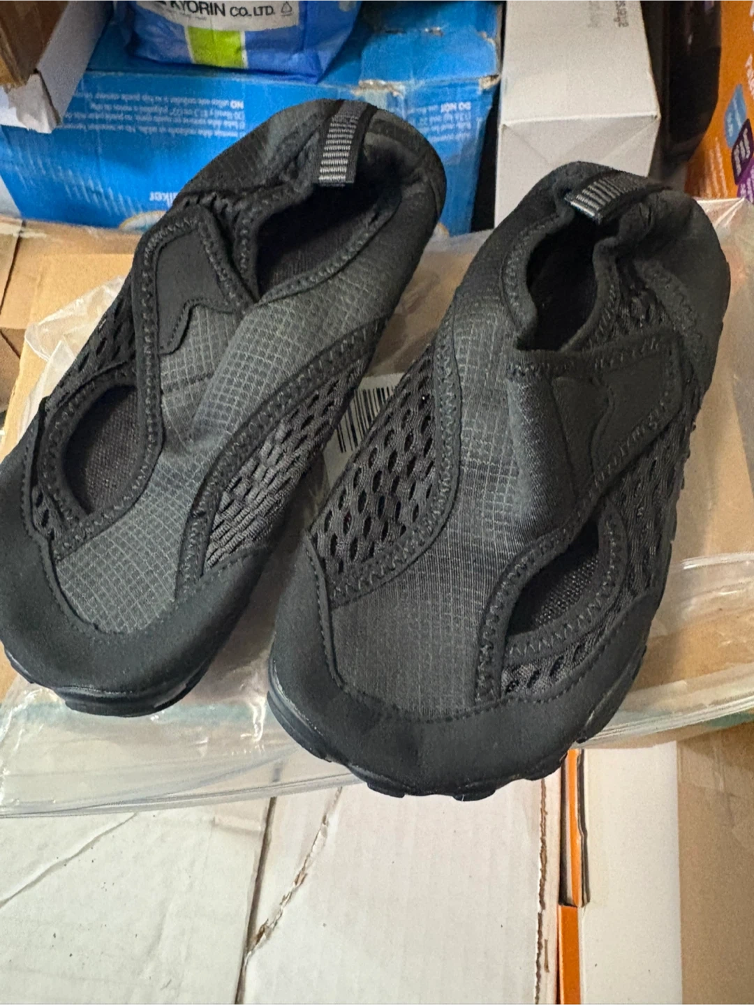 These Xihaliook kids' water hiking shoes are designed for active outdoor fun. They're black with a breathable mesh construction and a durable rubber sole. Perfect for beach days or exploring the outdoors!