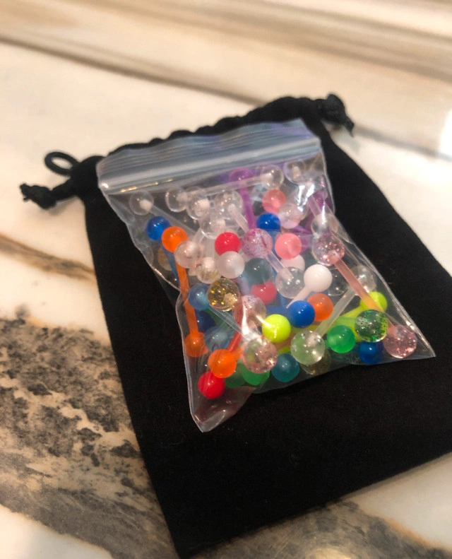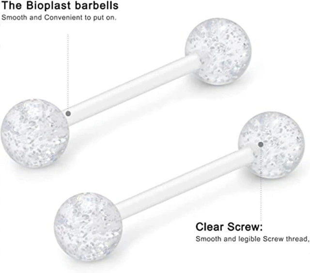 48PCS (24 pairs) of flexible acrylic tongue and nipple rings, straight barbell design. Size: Gauge: 14G (1.6mm); Bar Length: 16mm (5/8"); Ball Diameter: 6mm. Material: Crafted from high-quality flexible acrylic (bioplast), which is metal-free, hypoallergenic, and suitable for sensitive skin. Vibrant colors that glow in low light. Safe to wear during MRIs. Ideal for tongue and nipple piercings, suitable for both men and women. Comes with a velvet gift bag. Perfect for daily wear or as a thoughtful gift.