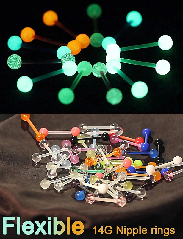 48Pcs Glow in Dark Tongue Nipple Ring for Women Men