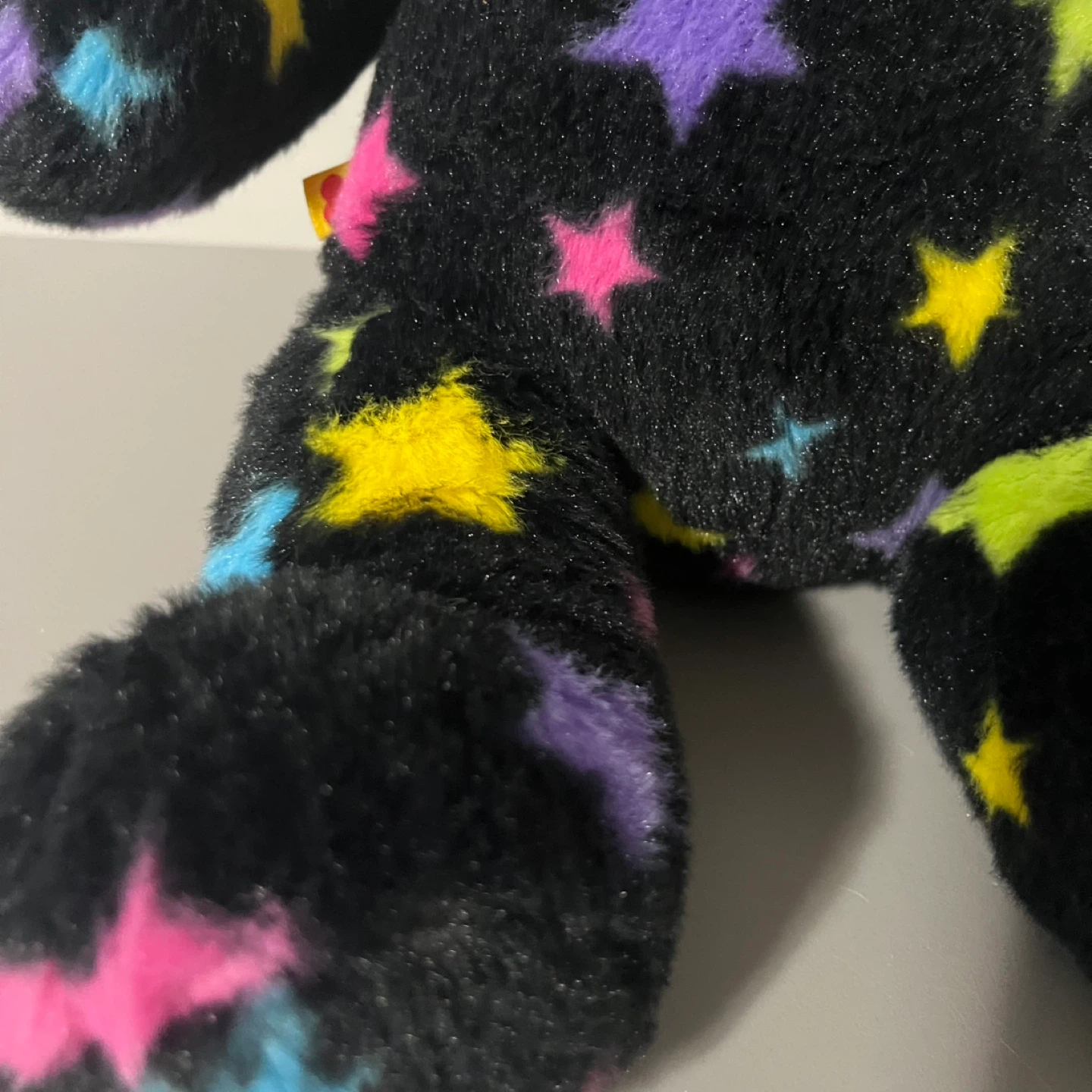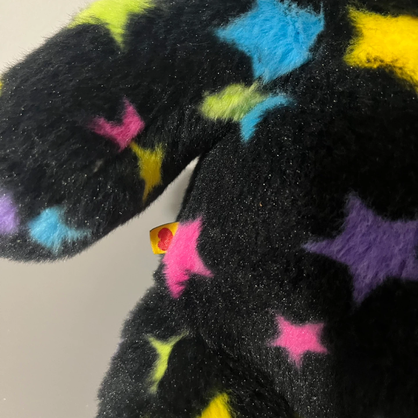 This Build-A-Bear plush is looking for a new home! It's black with colourful stars all over. A great addition to any collection or a fun toy for a kiddo