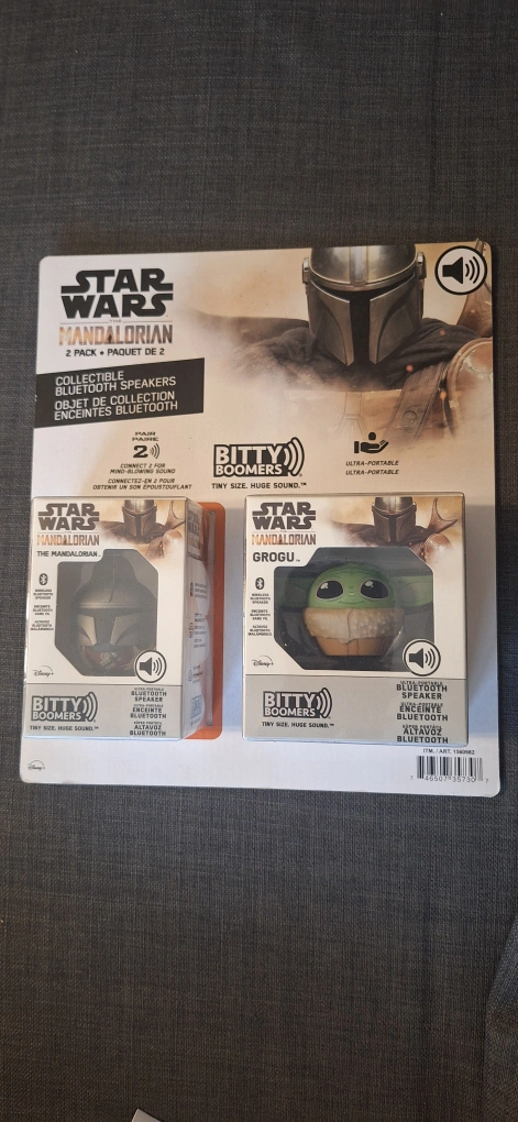Collectible Bluetooth speakers. Two-pack includes The Mandalorian and Grogu. Ultra-portable. Tiny size, huge sound.