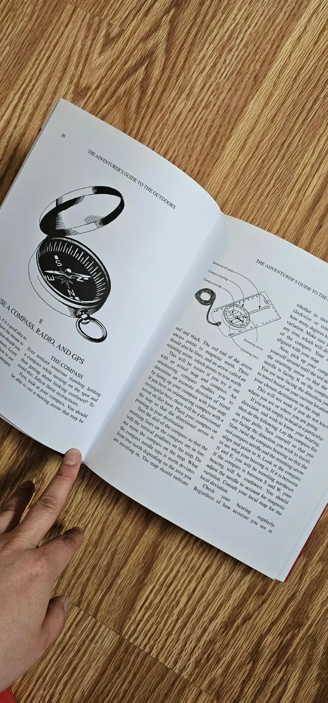 This book covers 100 essential skills for surviving in the wild. It details topics like treating scrapes and wounds, handling infections, and setting traps. Navigation basics with compasses and maps are also explained.